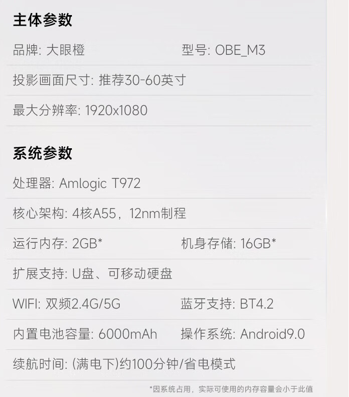 大眼橙 (OBE) 超薄轻便 投影仪M3 银色(单位:台)