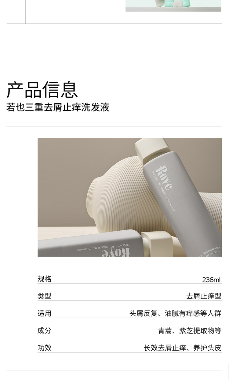 若也(Roye) 去屑止痒型 236ml*2瓶 三重去屑止痒洗发液 灰色(单位:组)