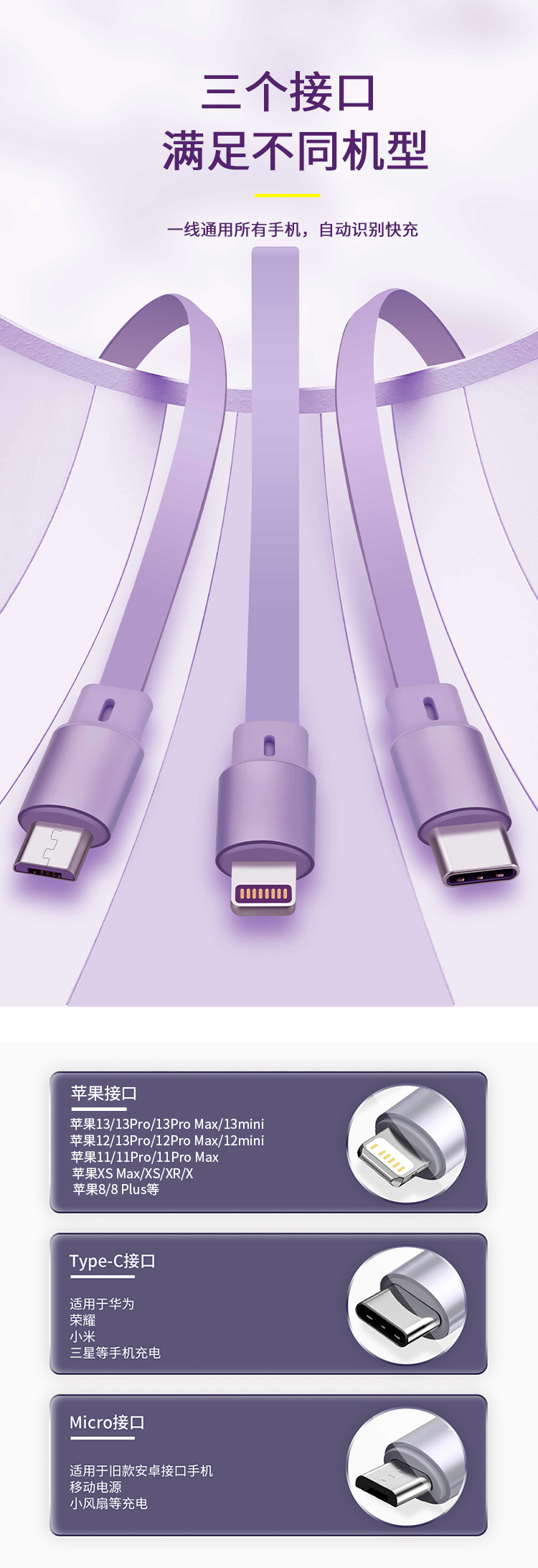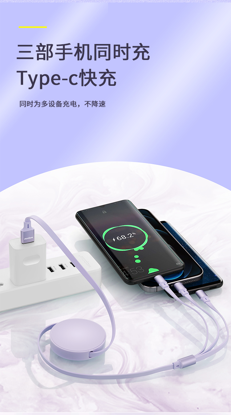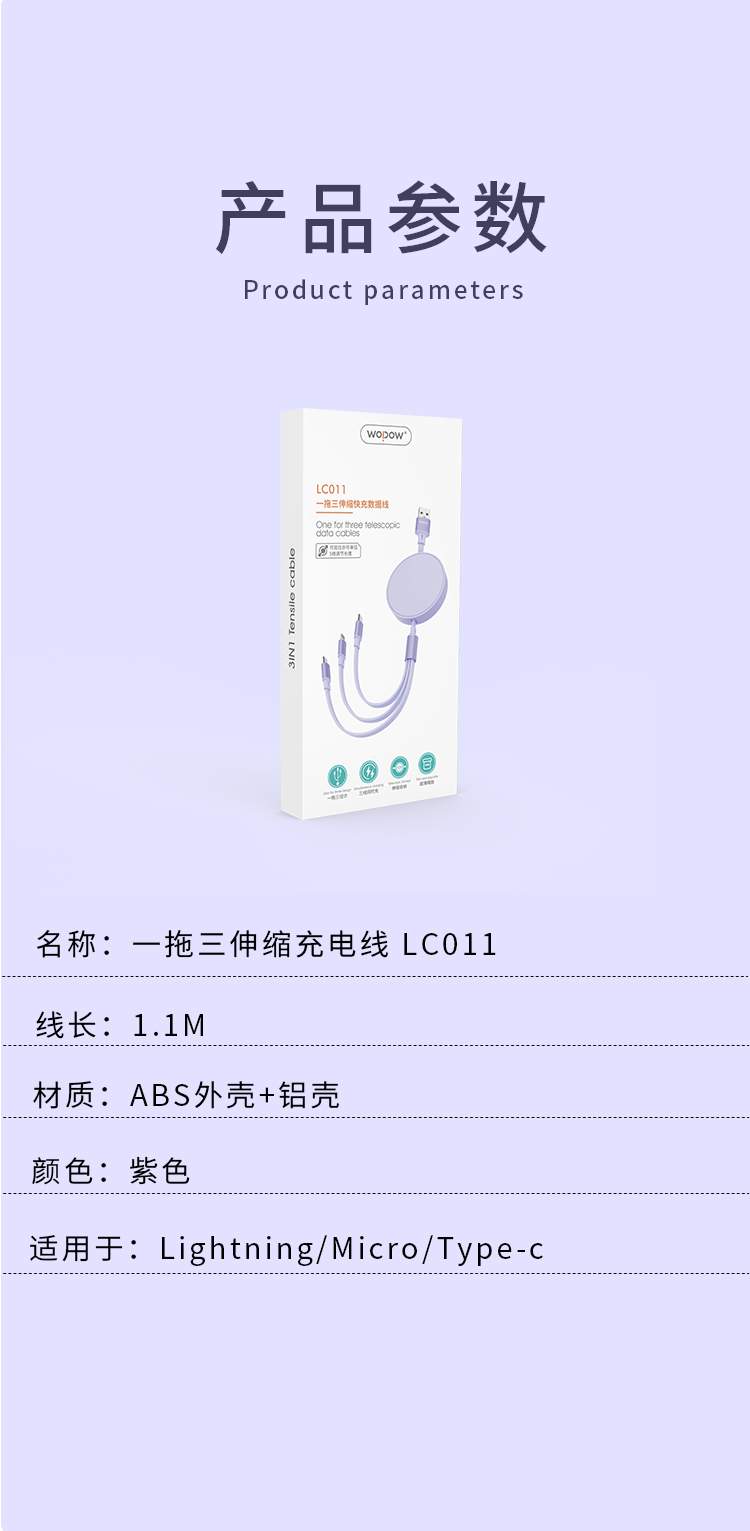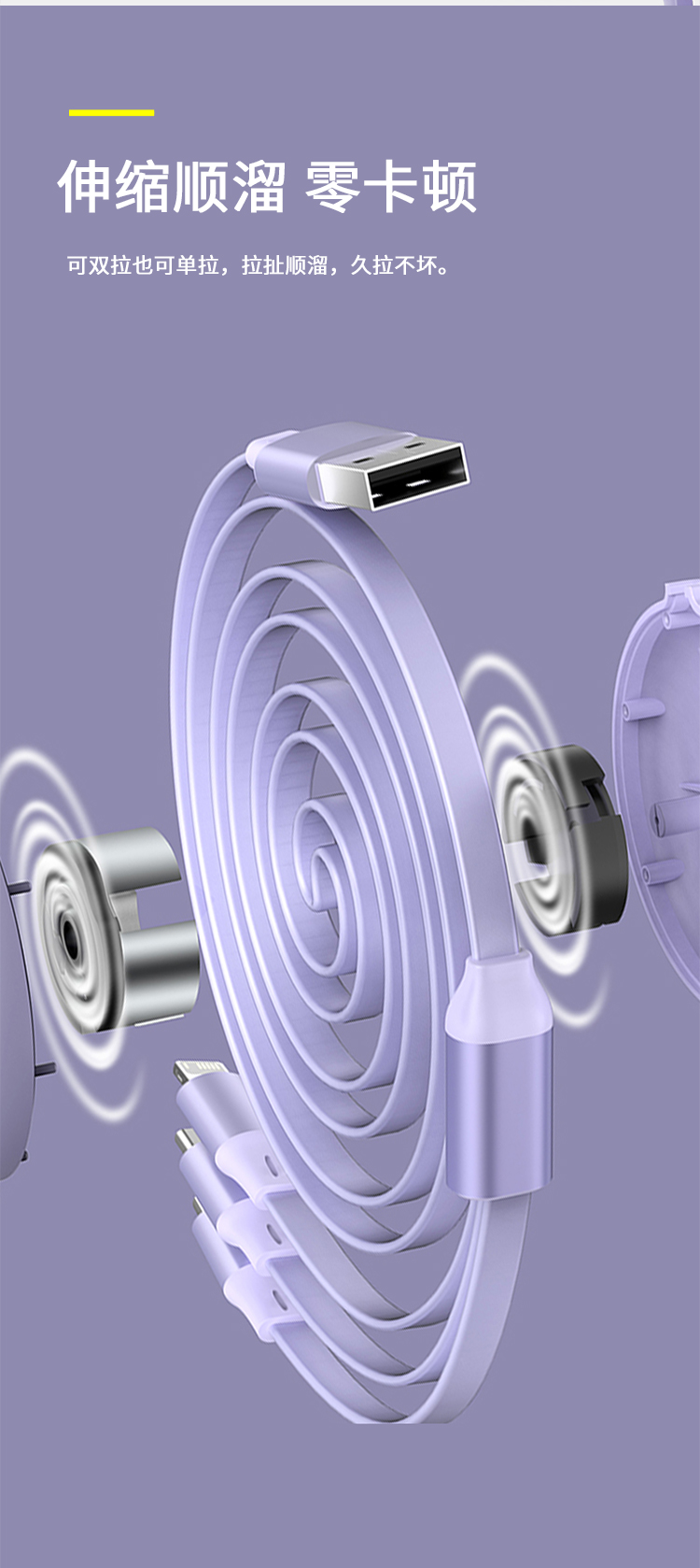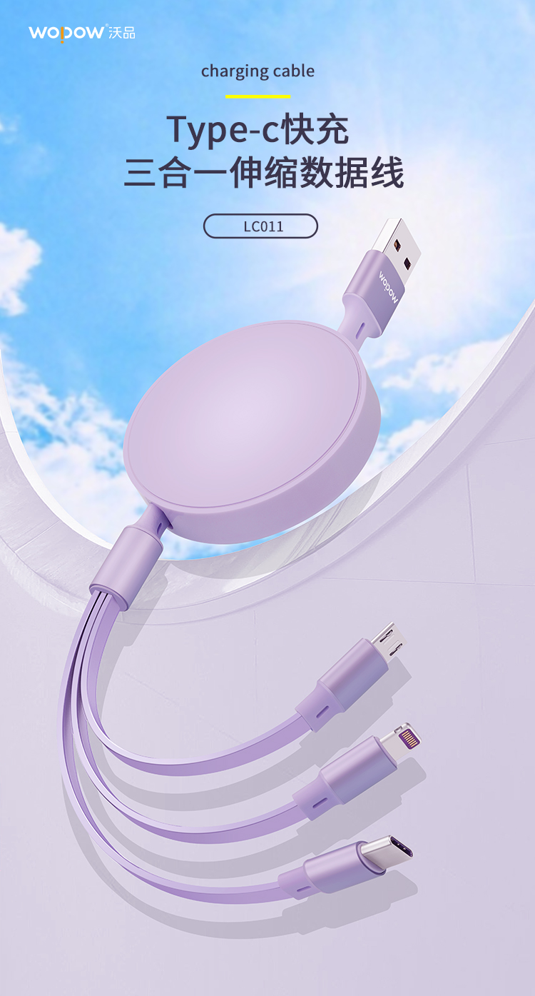 沃品单双拉一拖三伸缩充电线LC011紫 紫色