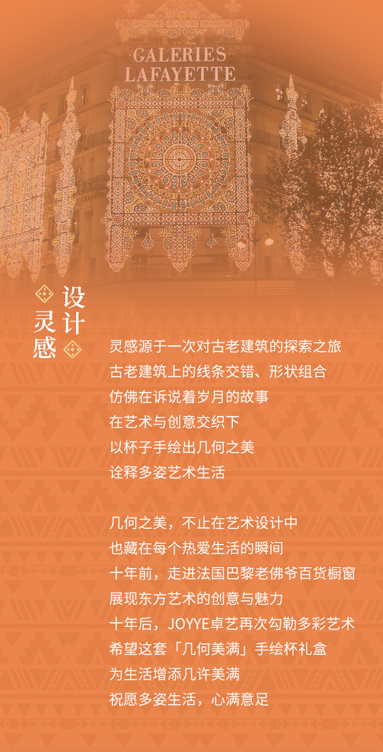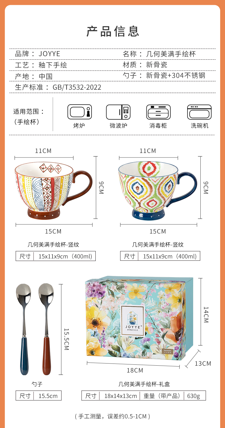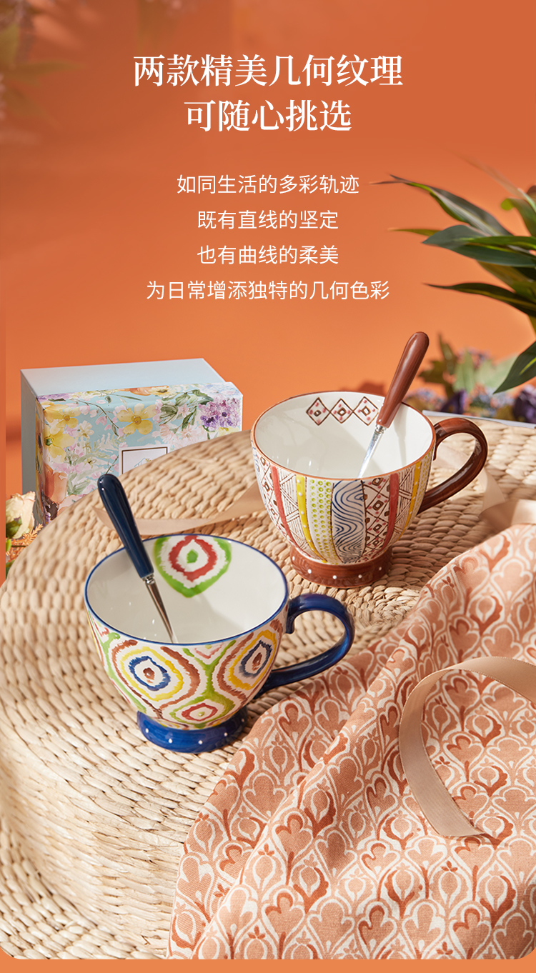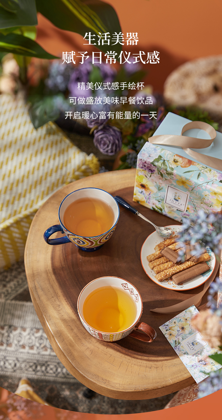 JOYYE 釉下彩手绘杯 套2几何美满手绘杯 400ml 竖纹(单位:套)