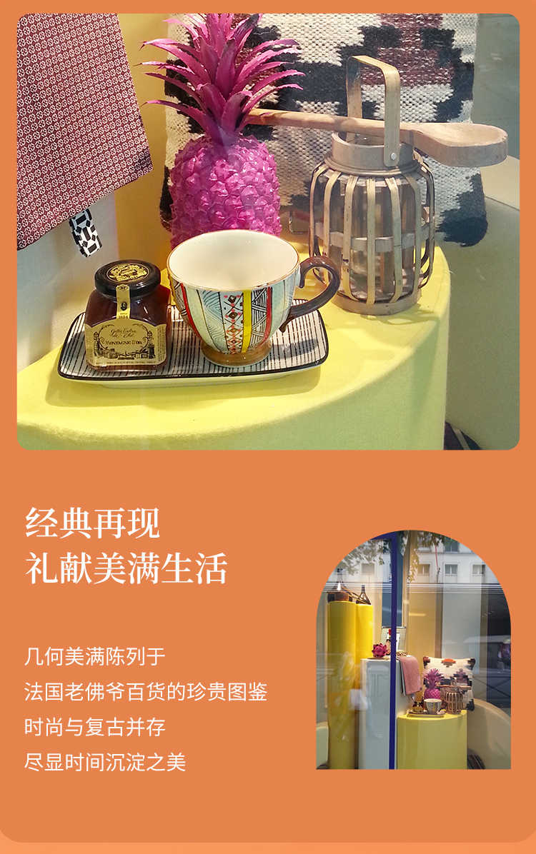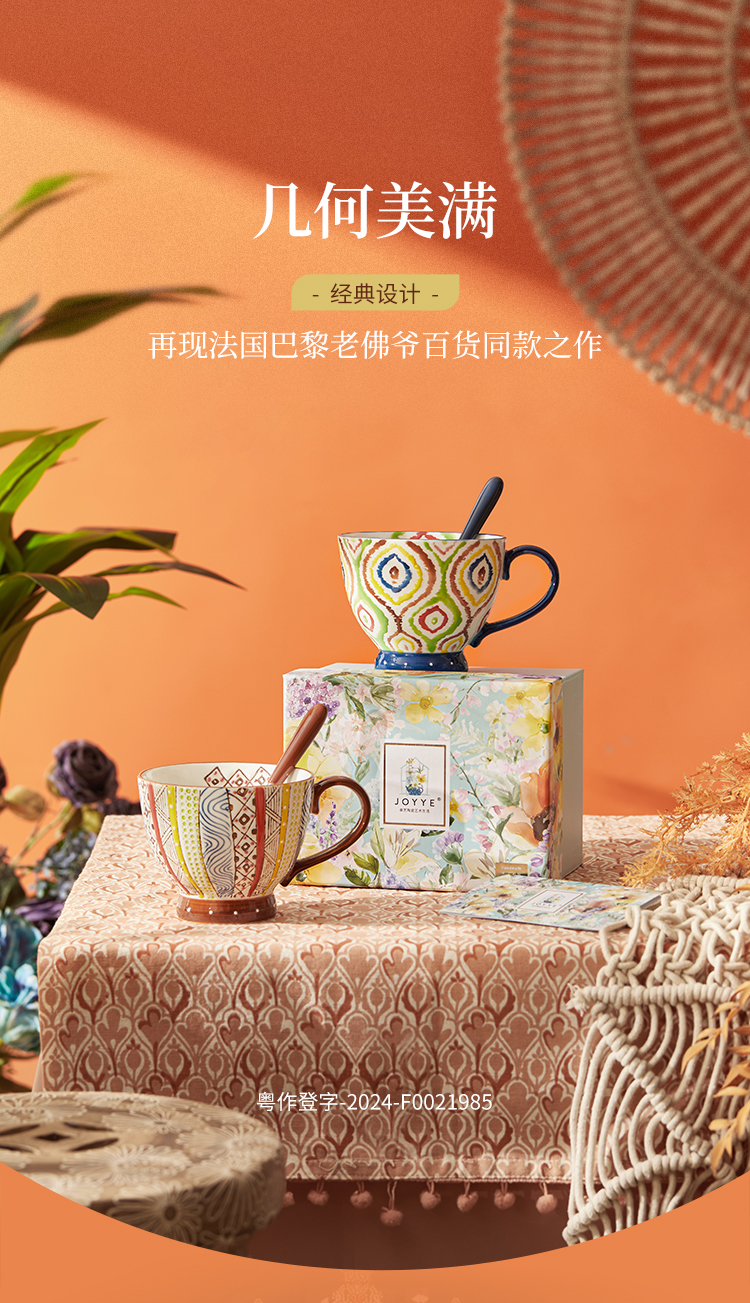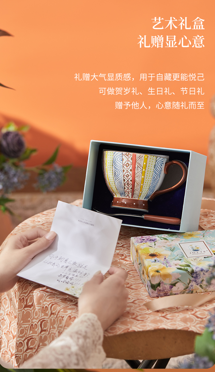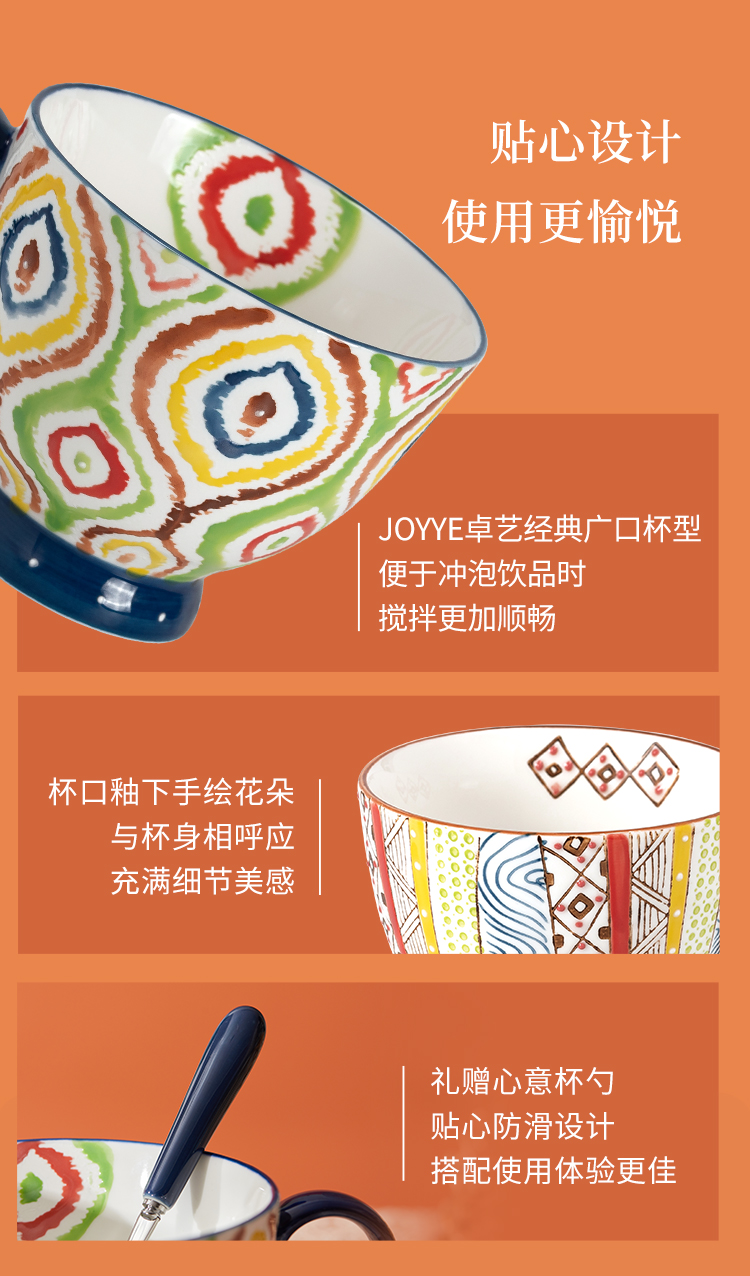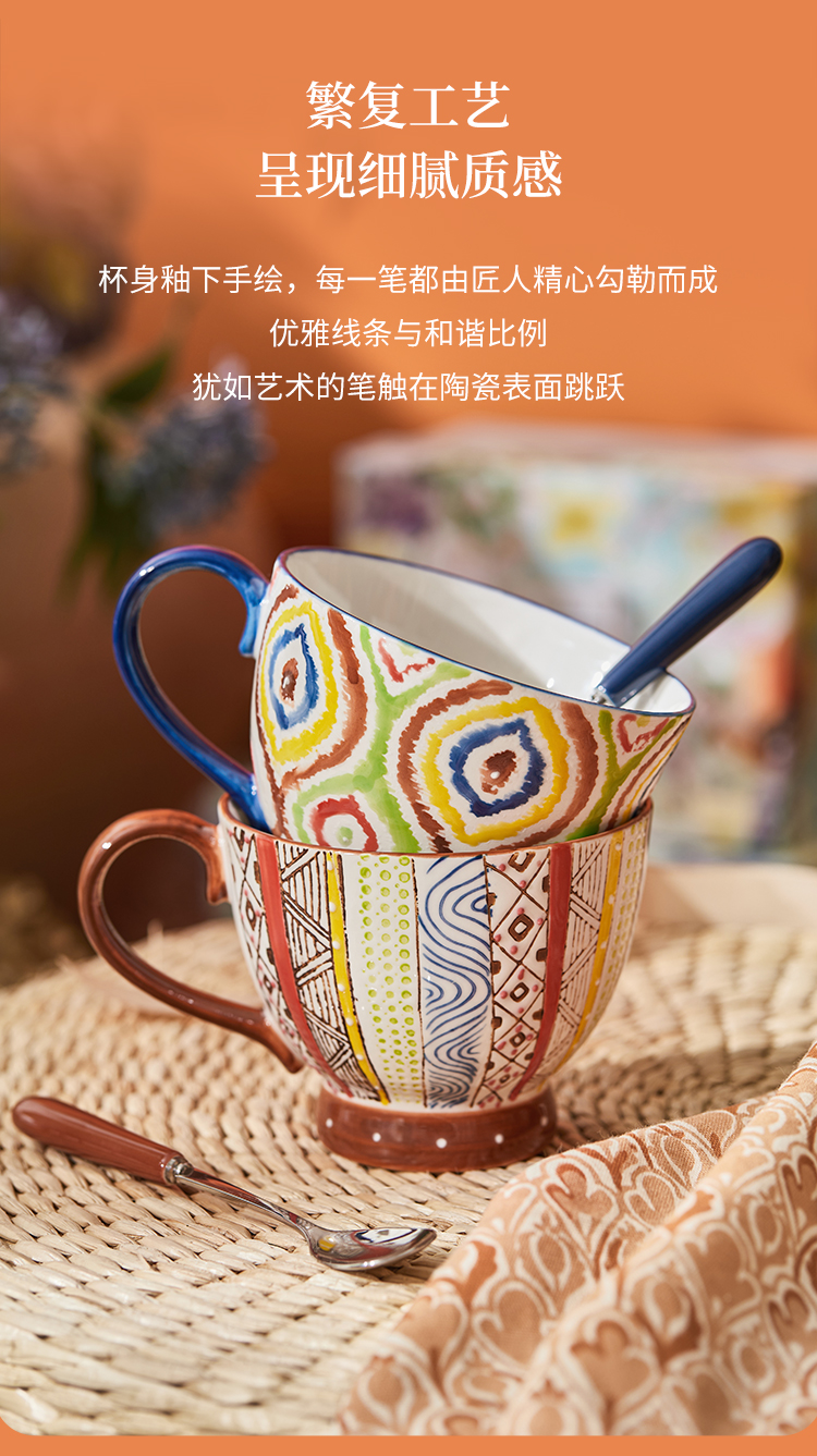 JOYYE 釉下彩手绘杯 套2几何美满手绘杯 400ml 竖纹(单位:套)