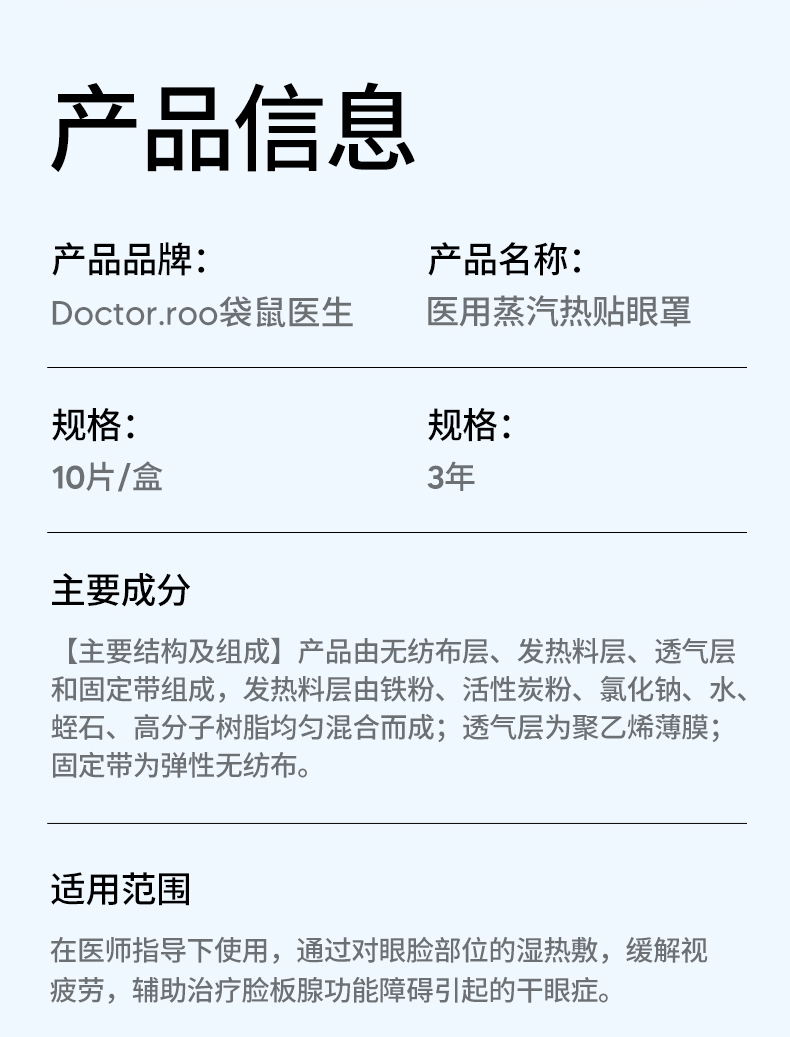 袋鼠医生(DR.ROOS) 干眼症热帖 10包/盒*4盒 医用蒸汽眼罩 本白色(单位:组)