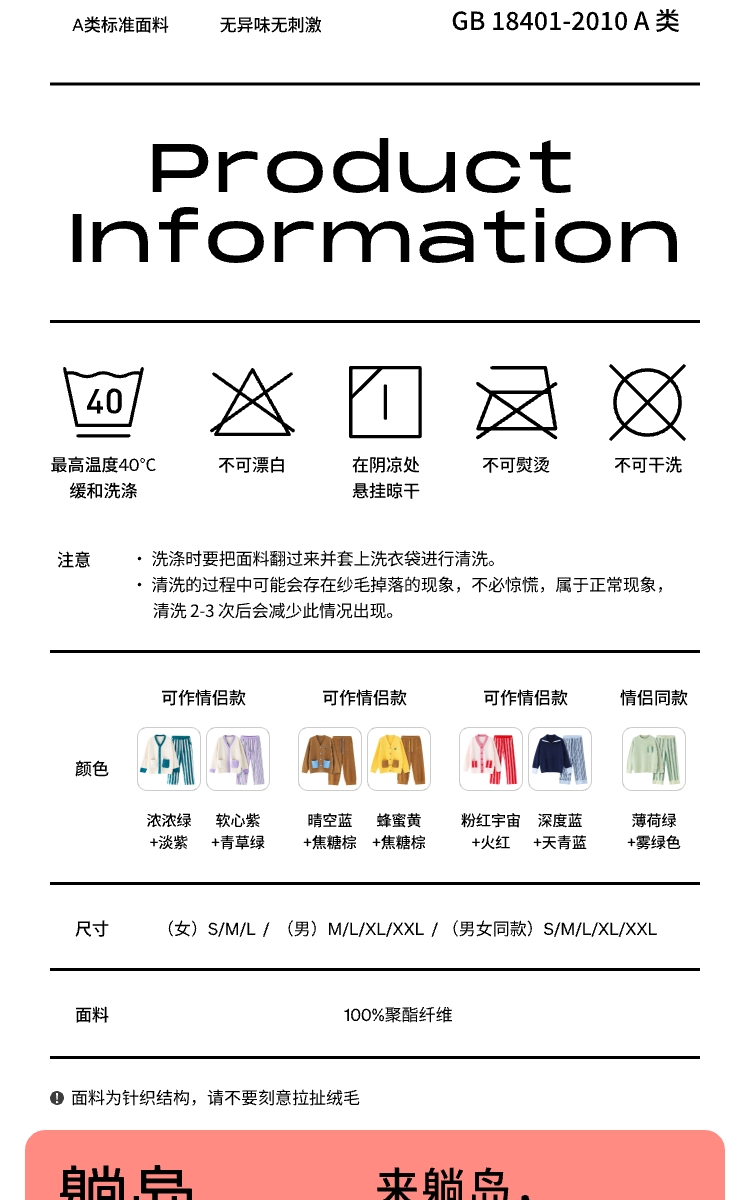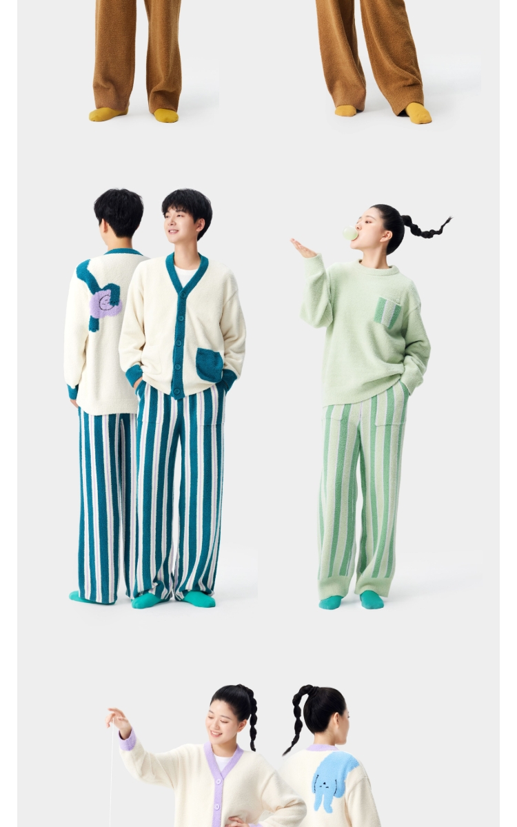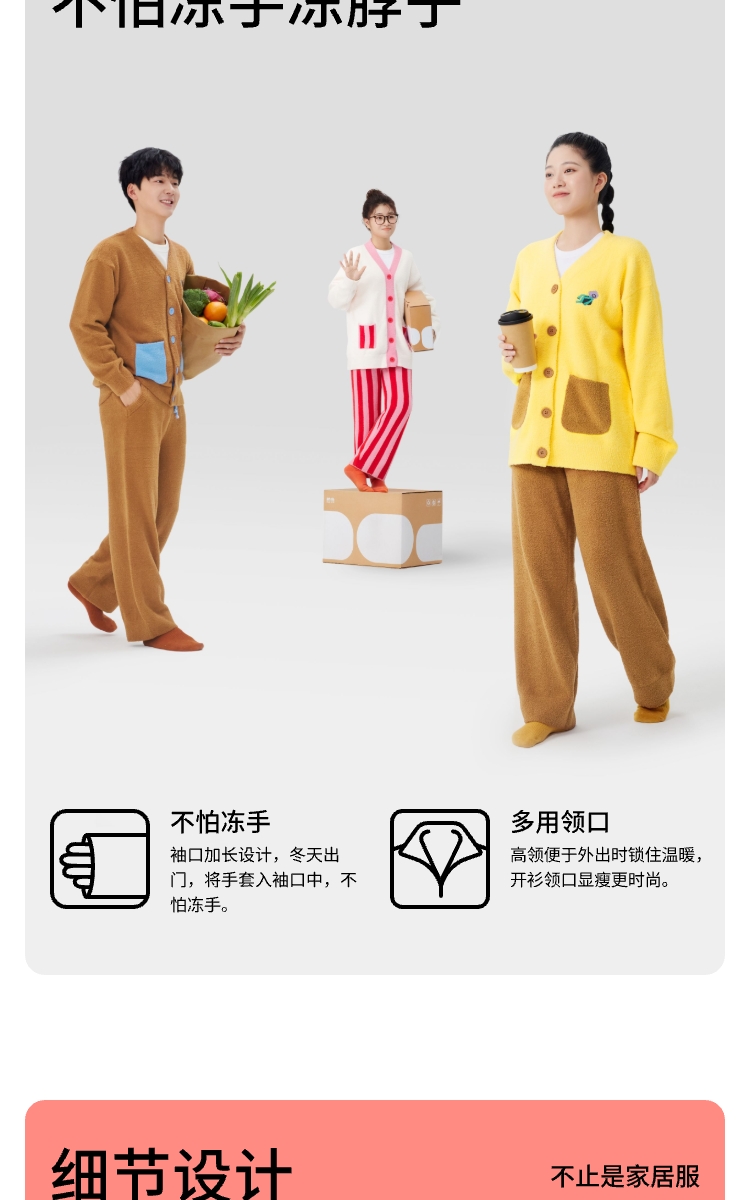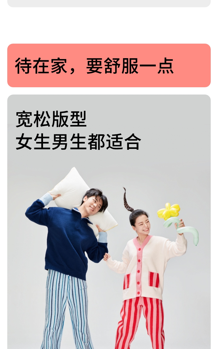 躺岛 半边绒家居服套装 开衫款 S码 粉红宇宙+火红(单位:套)