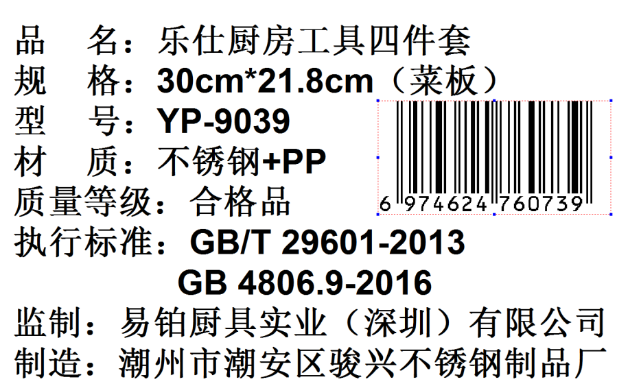 【yispot易铂】乐仕厨房工具四件套YP-9039菜板+瓜皮刀+剪刀+水果刀 茱萸粉