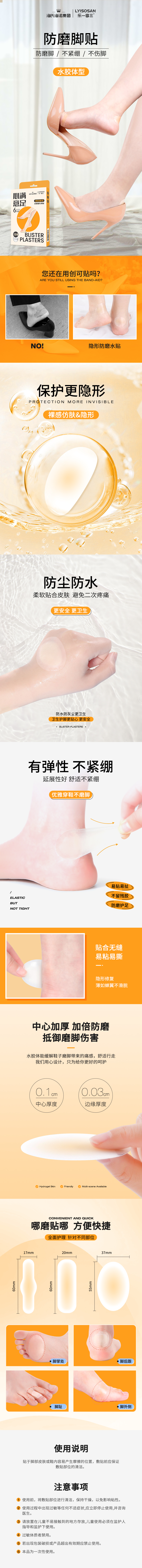 乐一享三 水胶体防磨脚专用贴(组合型) 海氏海诺 6片/盒*5 橙色(单位:组)
