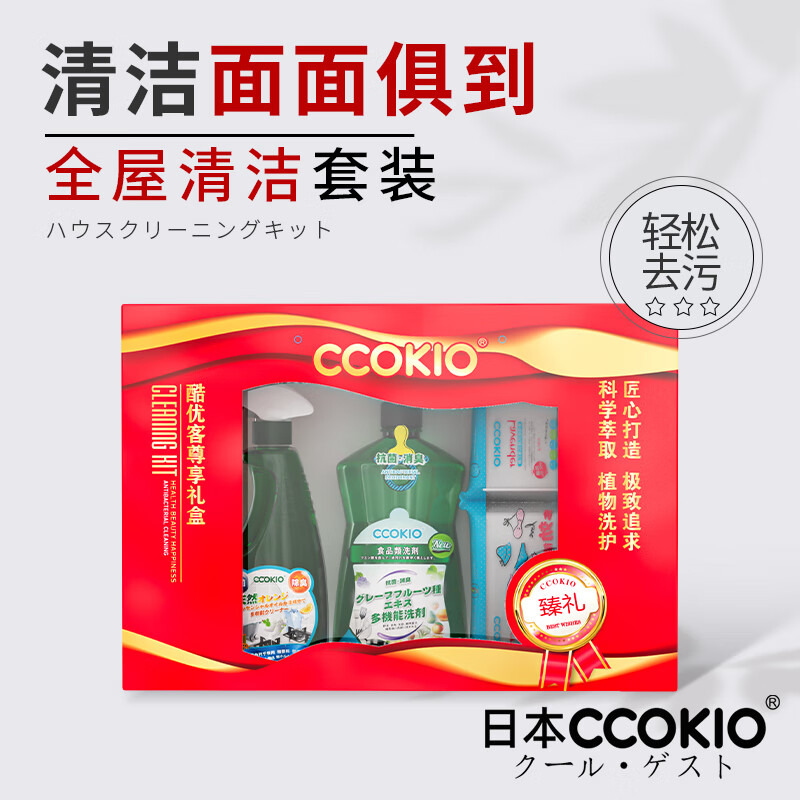 酷优客(CCOKIO) 多功能家庭抗菌清洁礼盒套装 四件套 洗洁精1100ml*1+清洁剂550ml*1+皂200g*2 红色(单位:套)