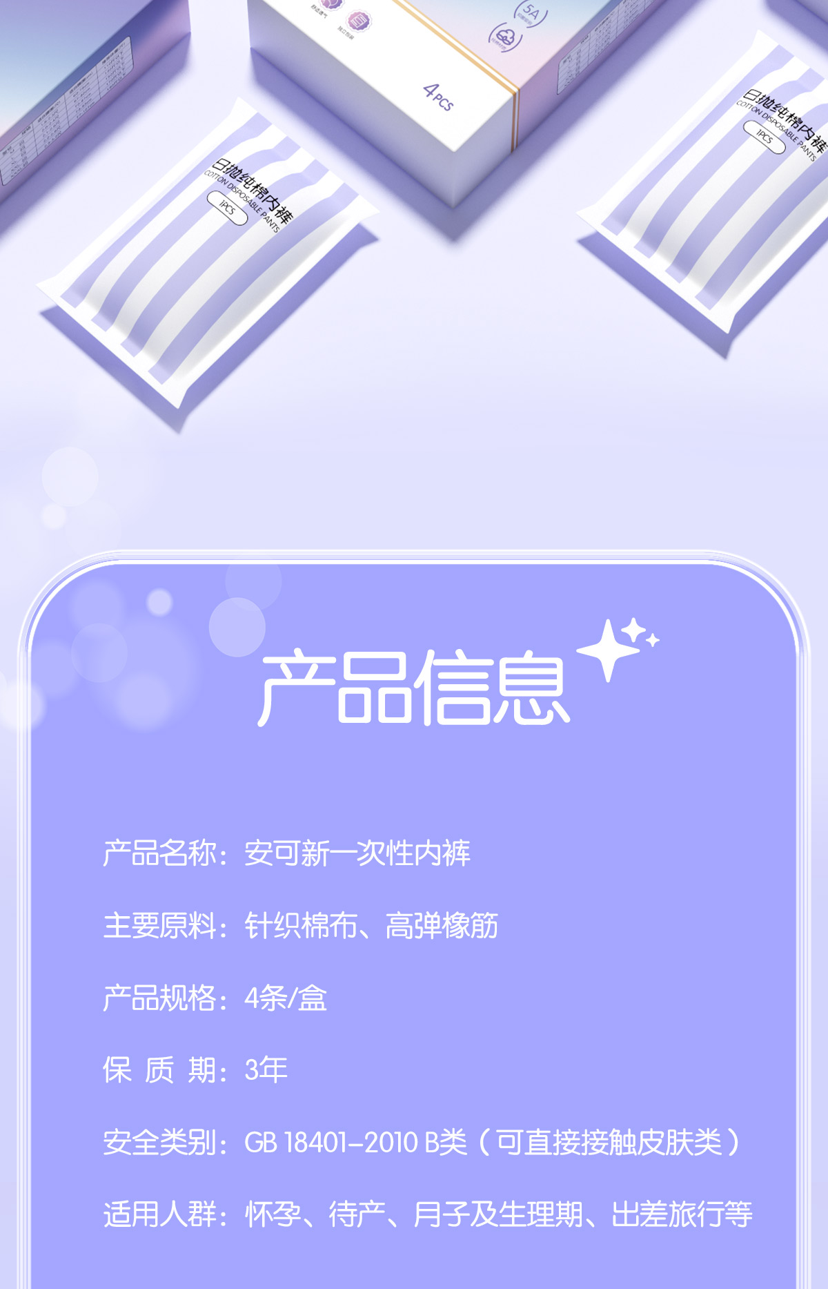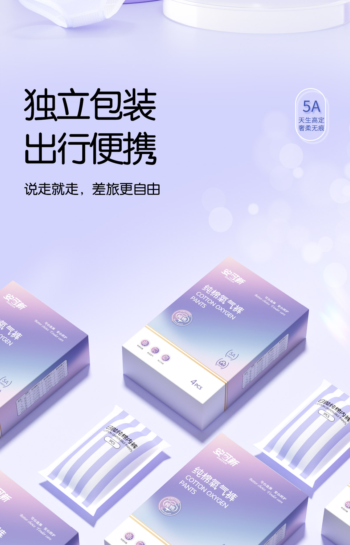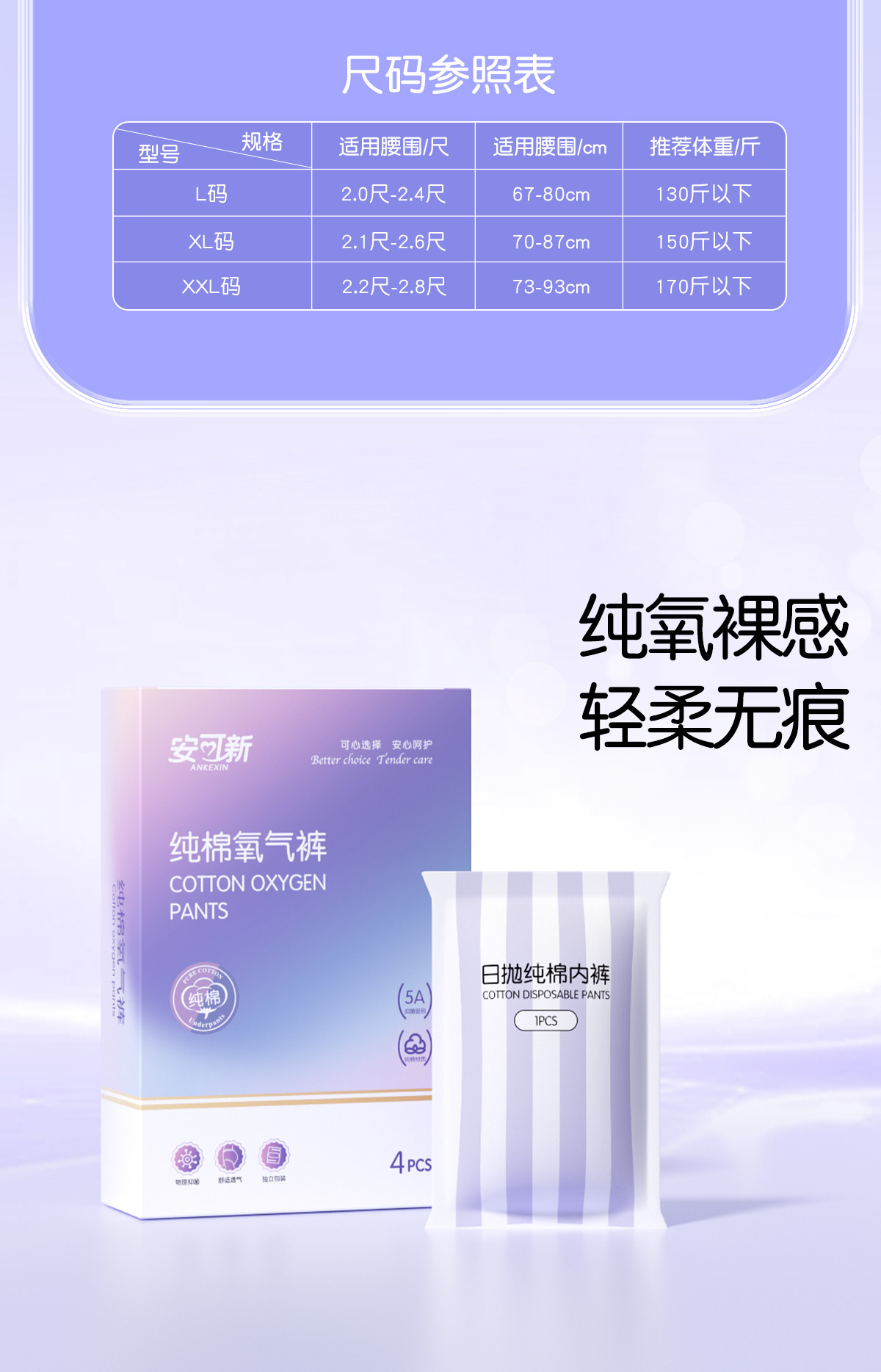 安可新 一次性纯棉加厚氧气旅行卫生免洗灭菌内裤 AKX-7207-2 XXL码4条装*2 混色(单位:组)