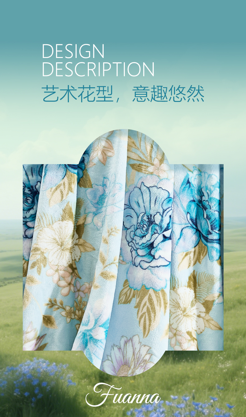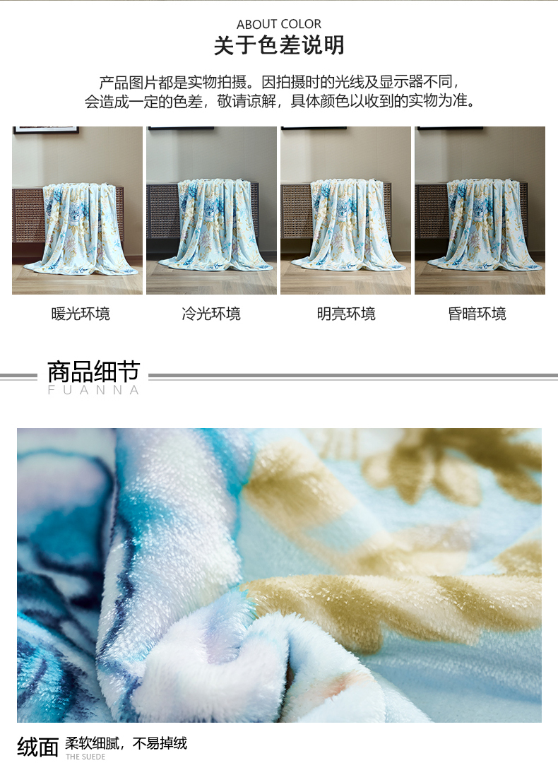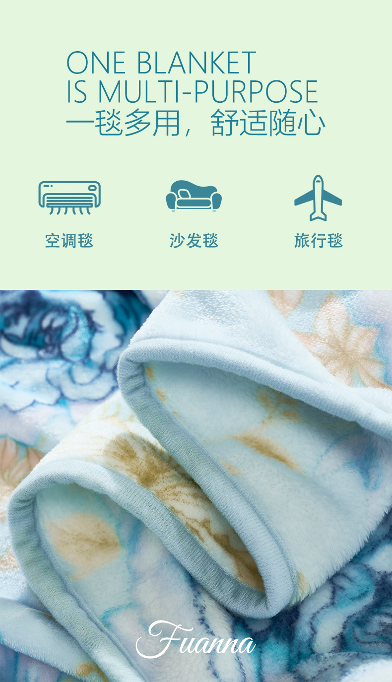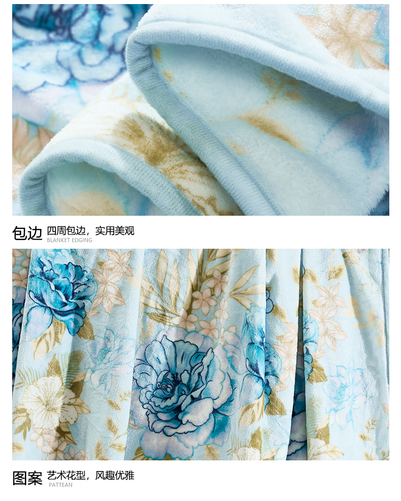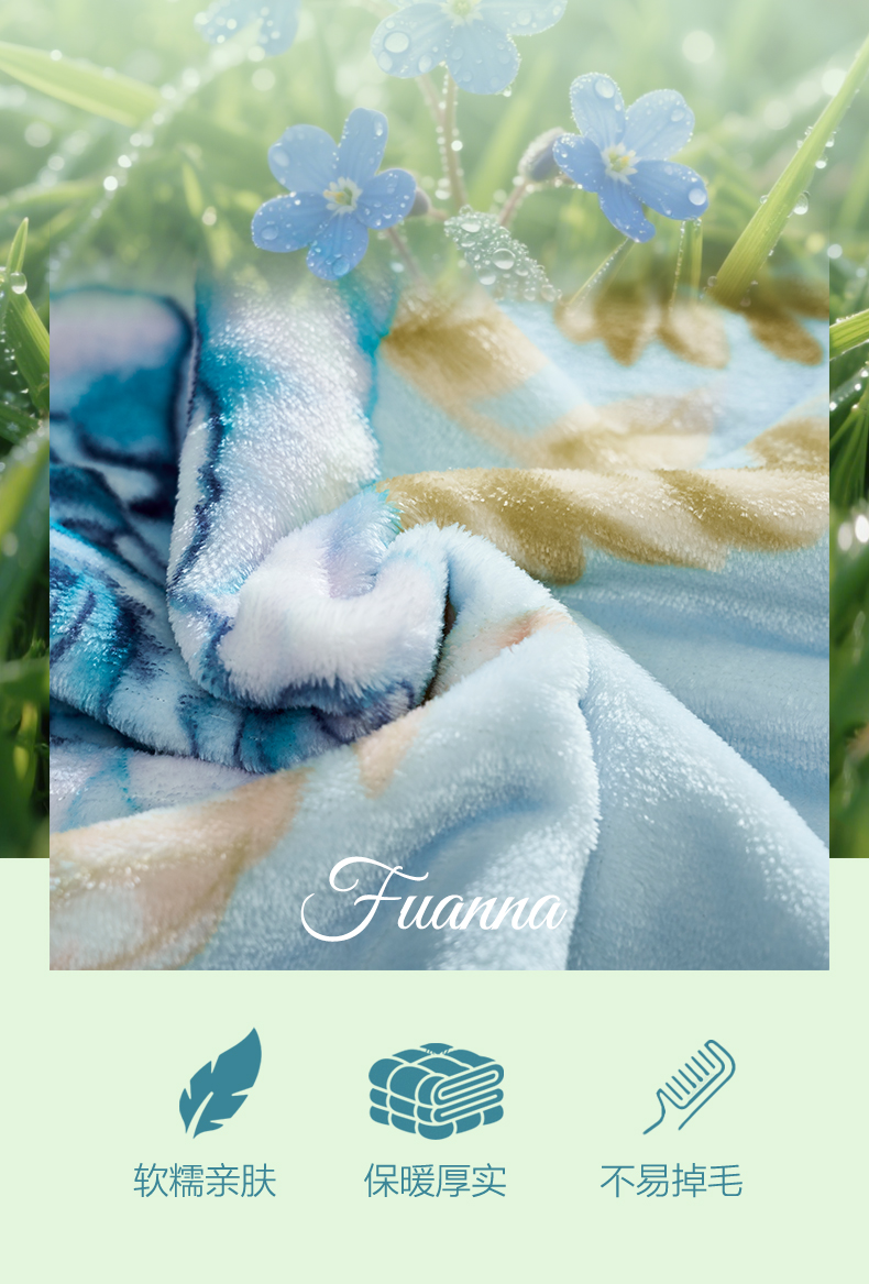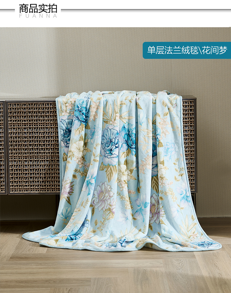 富安娜 单层法兰绒毯 花间梦 713102972 180*200cm 蓝色(单位:条)