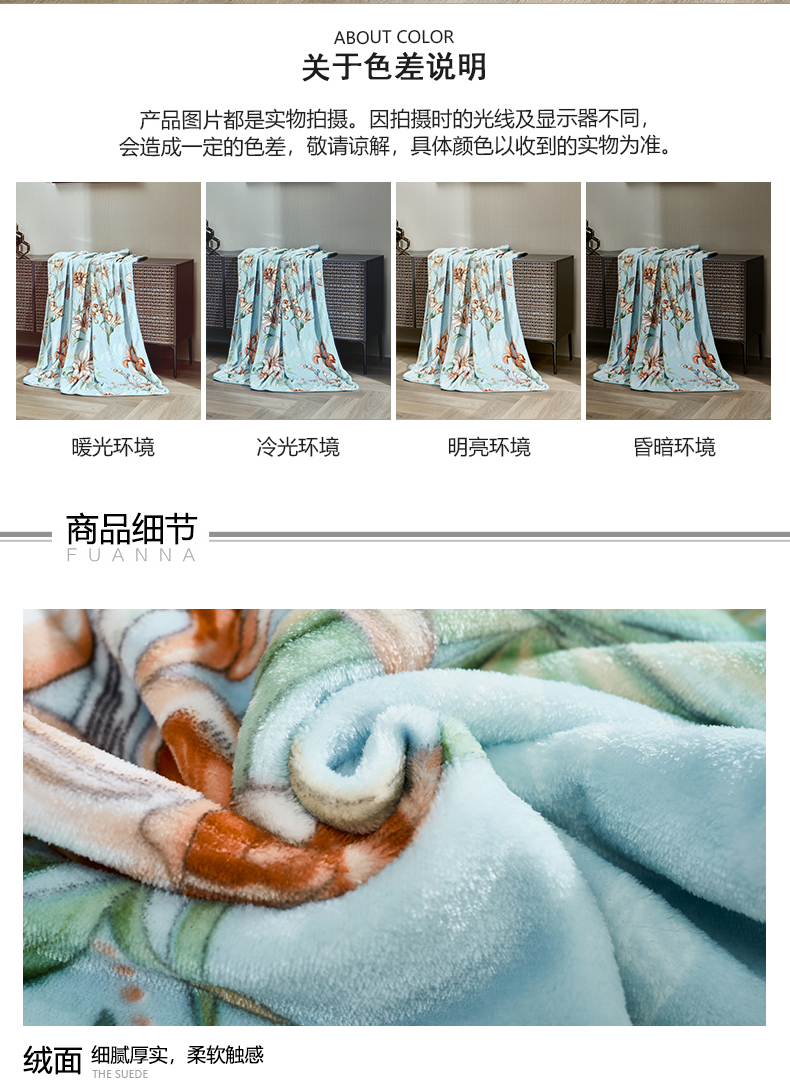 富安娜 单层法兰绒毯 忆辰音 713102973 150*200cm 蓝色(单位:条)