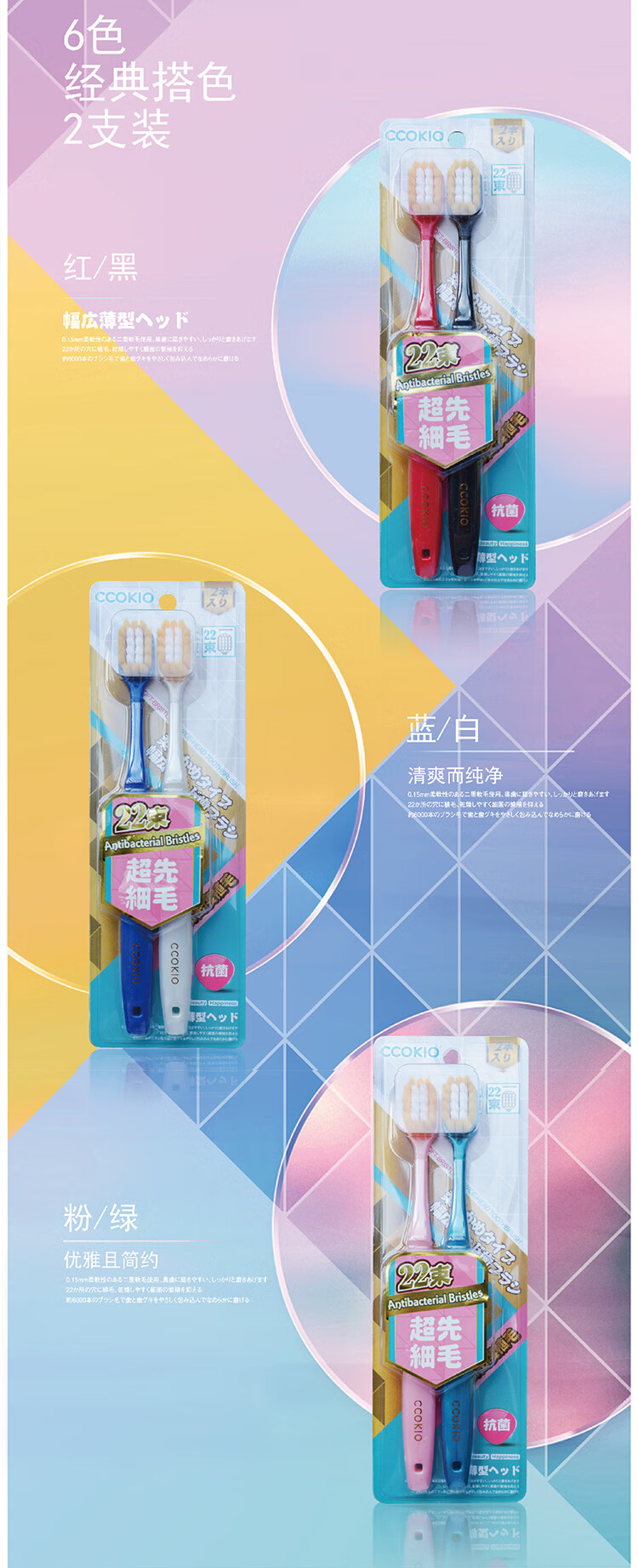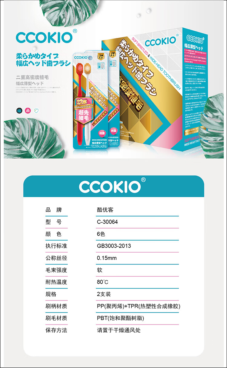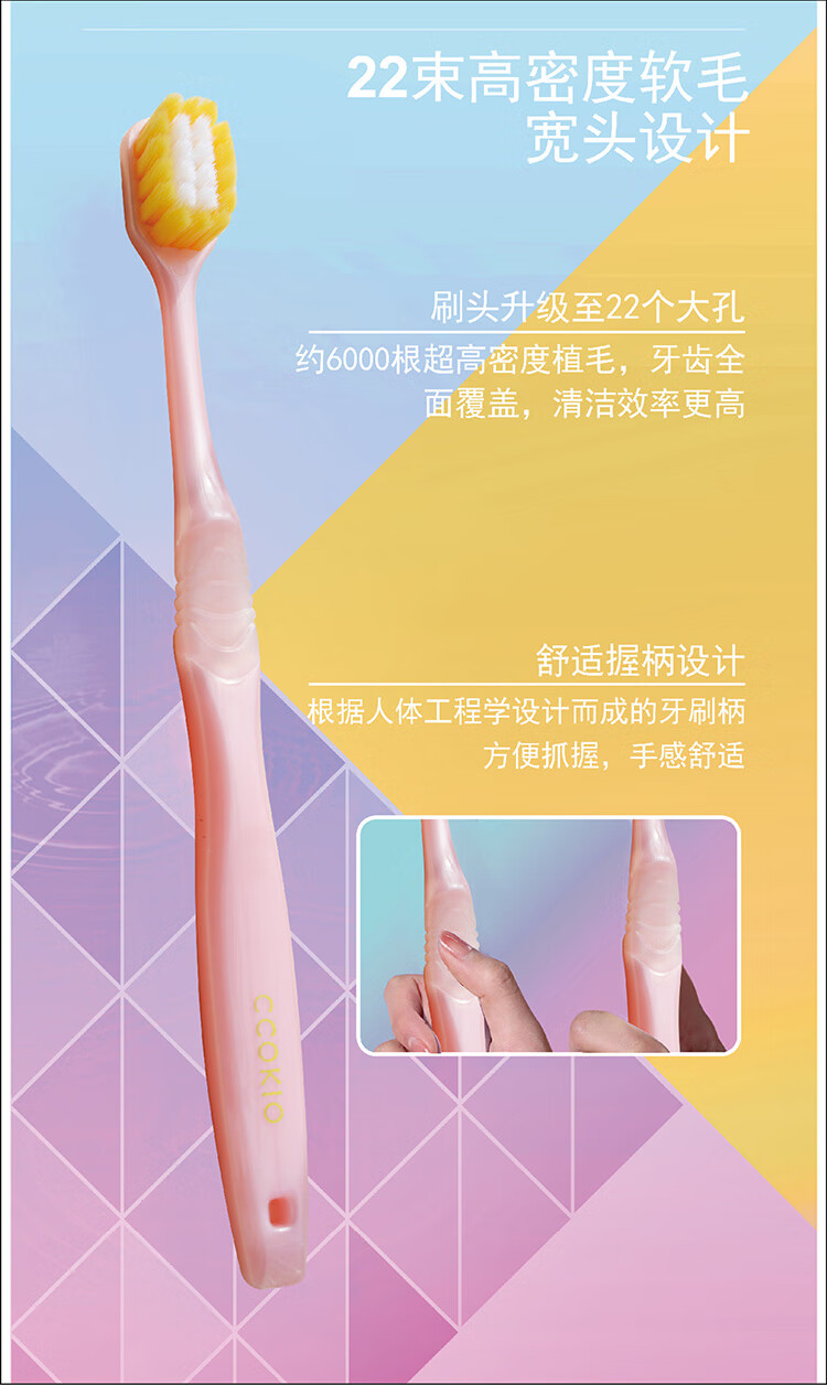 酷优客(CCOKIO) 22束宽头牙刷 高密软毛 2支装*2组(共4支) 混色(单位:组)