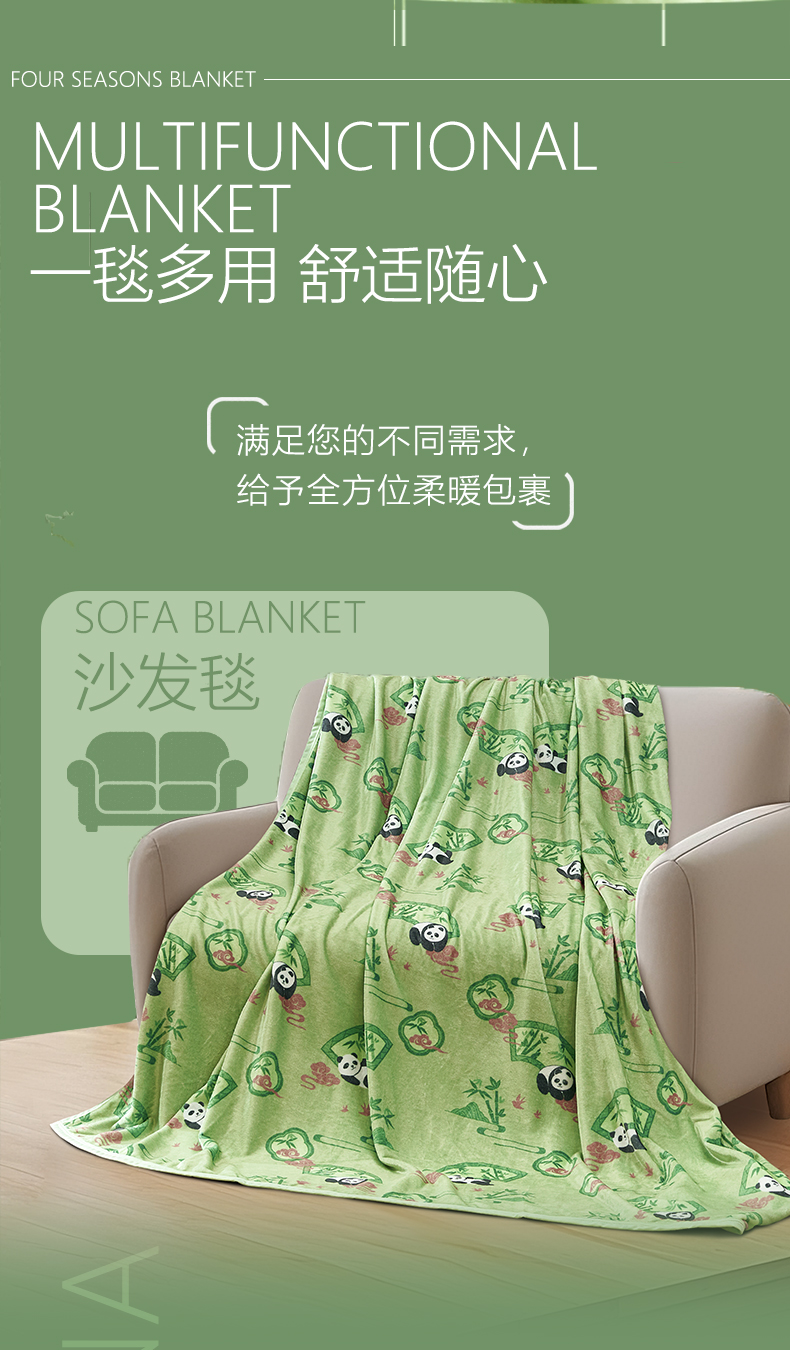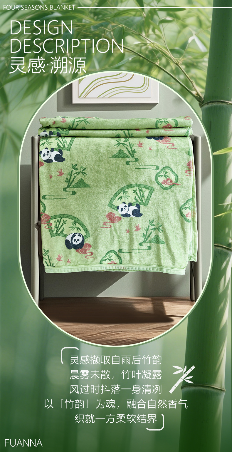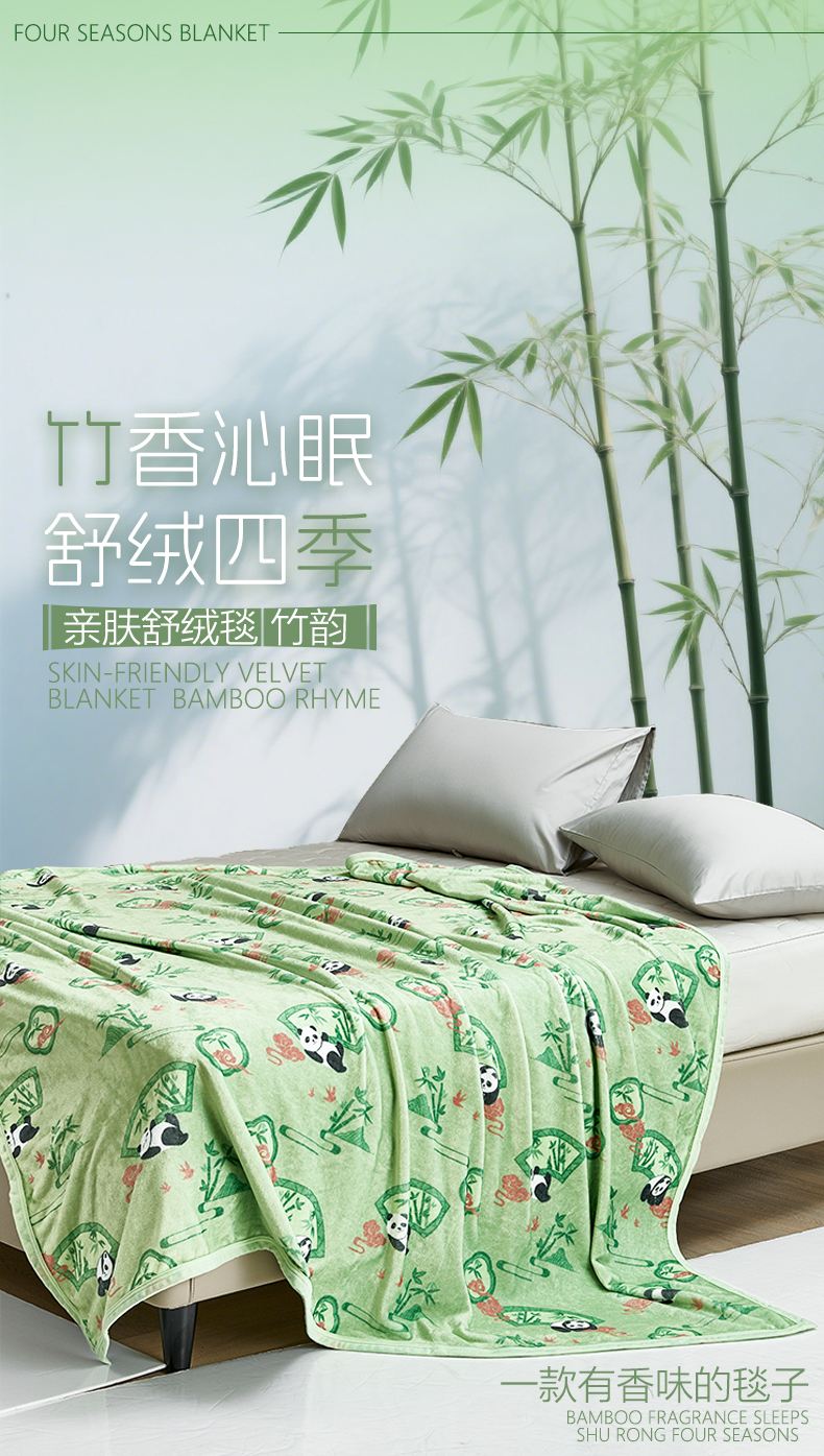 富安娜 亲肤舒绒毯 竹韵 713102977 180*200cm 绿色(单位:条)