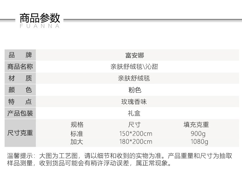 富安娜 亲肤舒绒毯 沁甜 713102979 180*200cm 粉色(单位:条)