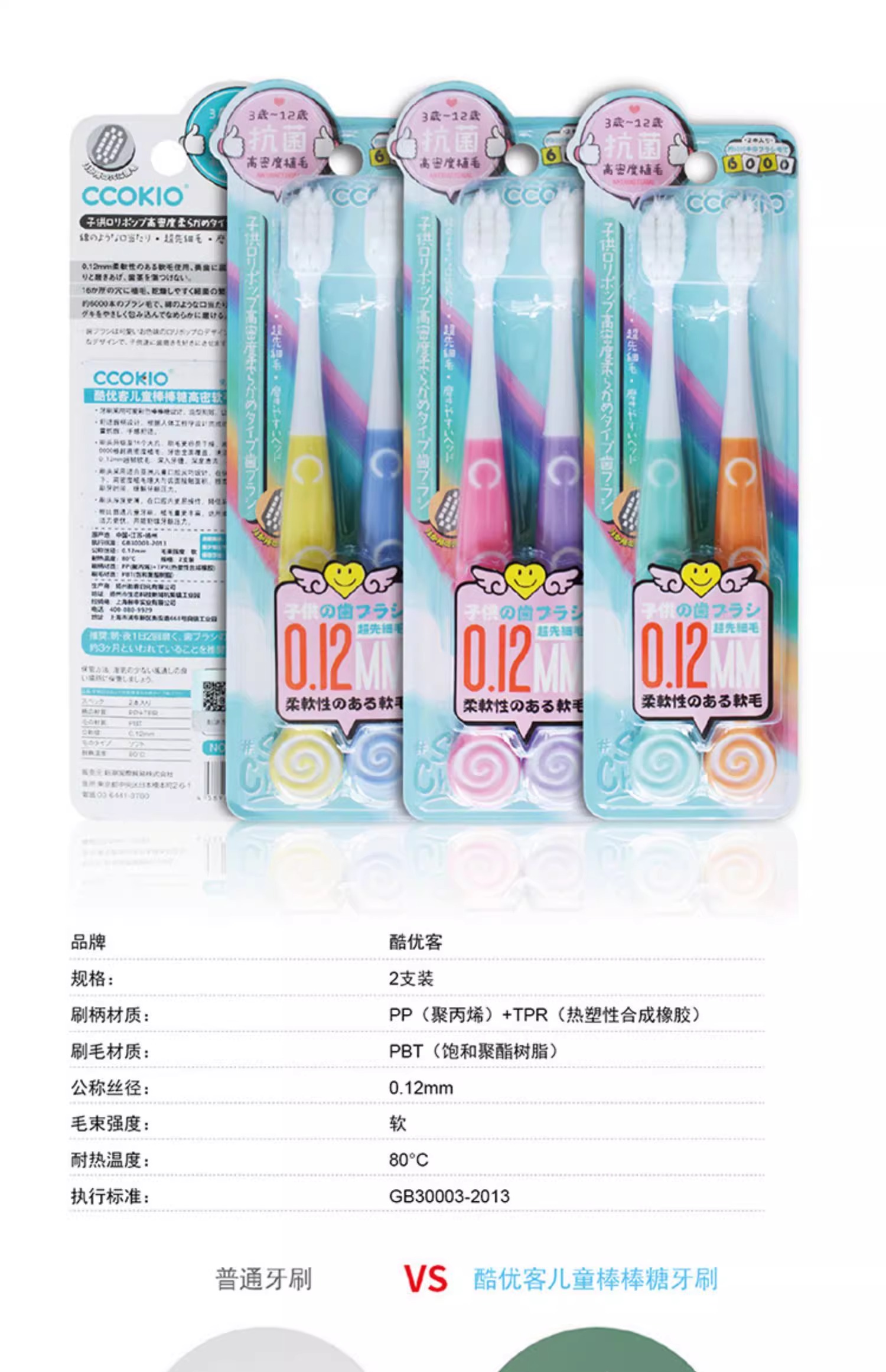 酷优客(CCOKIO) 儿童棒棒糖软毛牙刷 高密软毛 2支装*2组(共4支) 混色(单位:组)