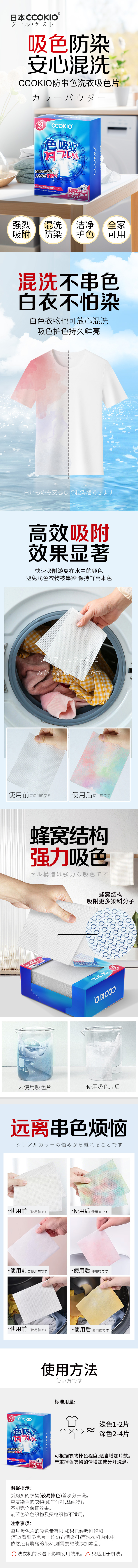 酷优客(CCOKIO) 防串色洗衣吸色片 约11.2*28CM 50片装*2盒 蓝色(单位:组)