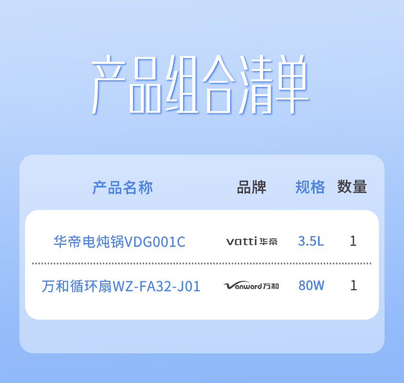 华帝(VATTI) 电炖锅+万和循环扇组合 VDG001C+WZ-FA32-J01 3.5L+80W(2件) 混色(单位:套)