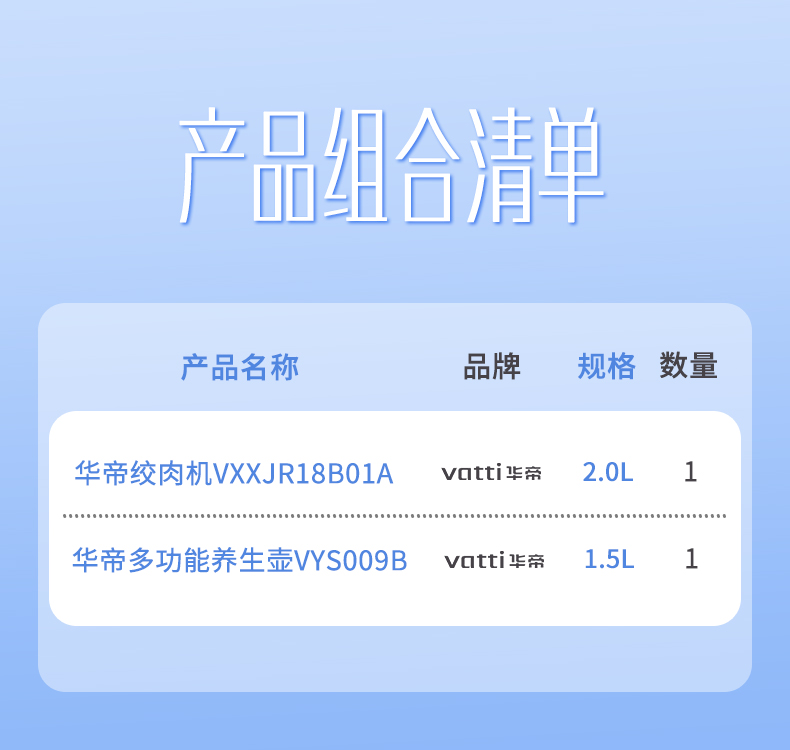 华帝(VATTI) 绞肉机+养生壶组合 VXXJR18B01A+VYS009B 2L+1.5L(2件) 混色(单位:套)