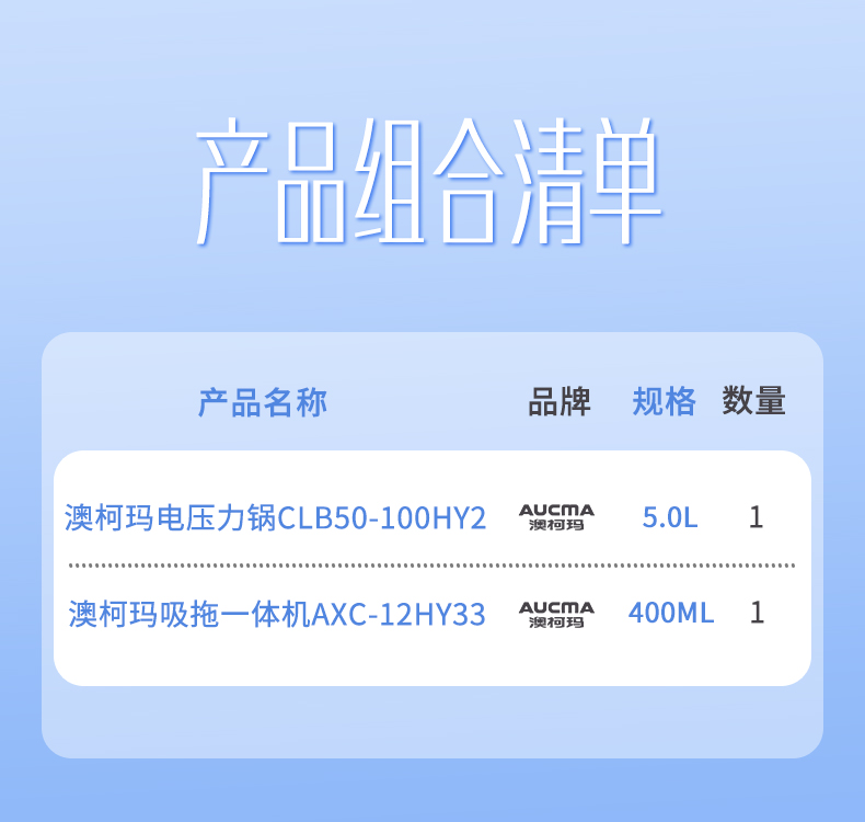 澳柯玛(AUCMA) 电压力锅+吸拖一体机组合 CLB50-100HY2+AXC-12HY33 2件 混色(单位:套)