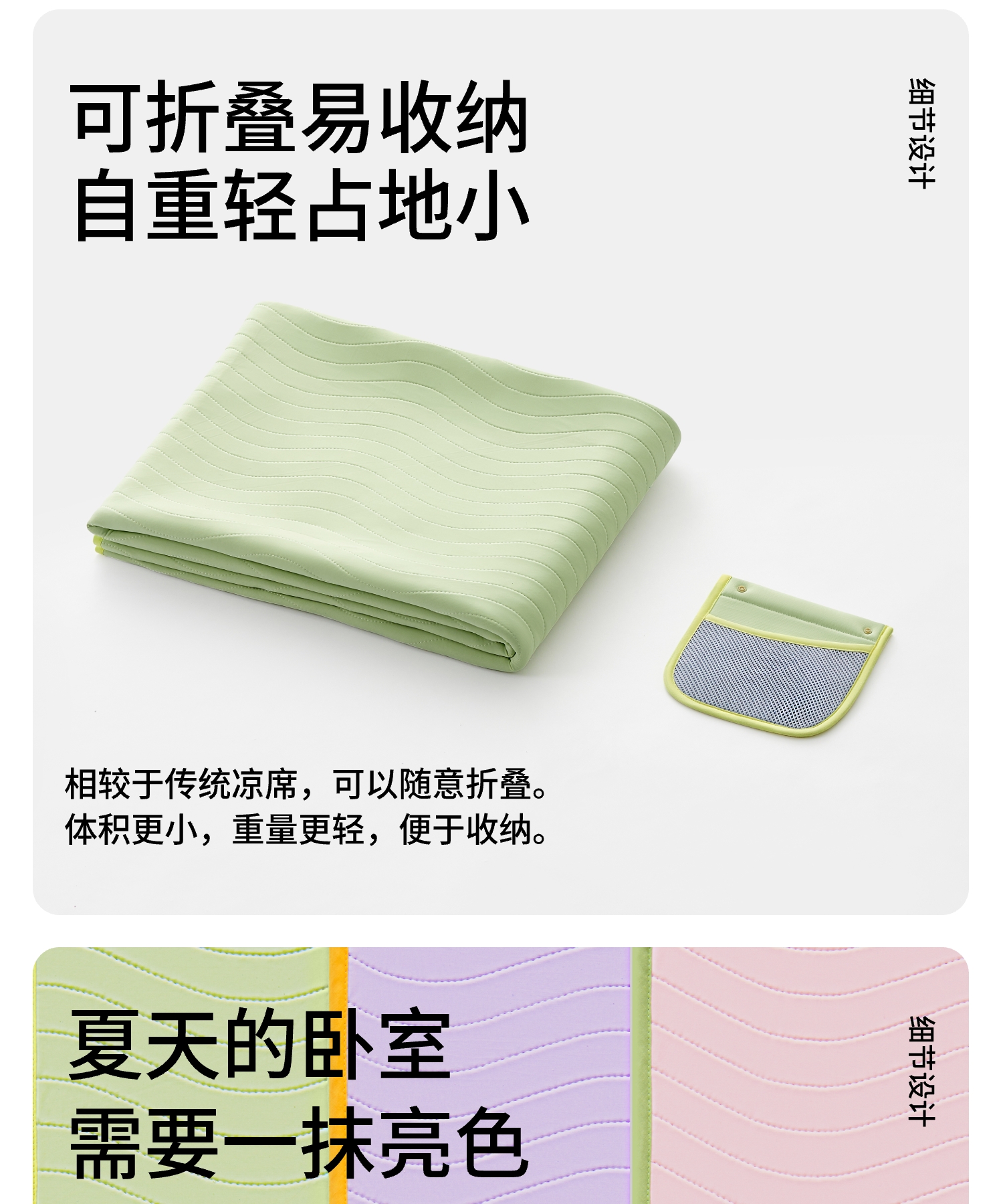 躺岛 夏季软凉席可机洗冰丝 折叠式 (小)150*200cm 藤雾紫+湖泊蓝(单位:张)