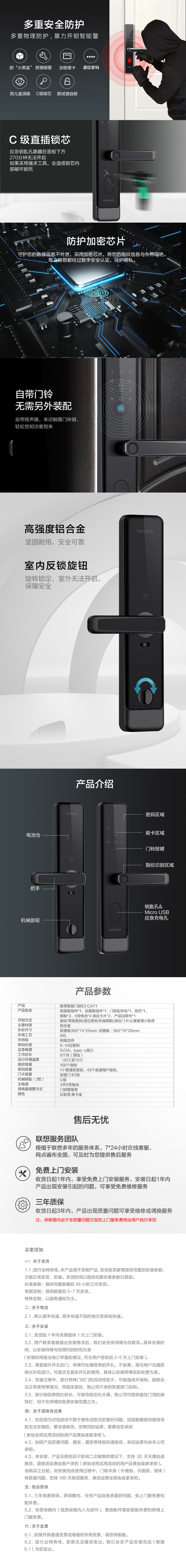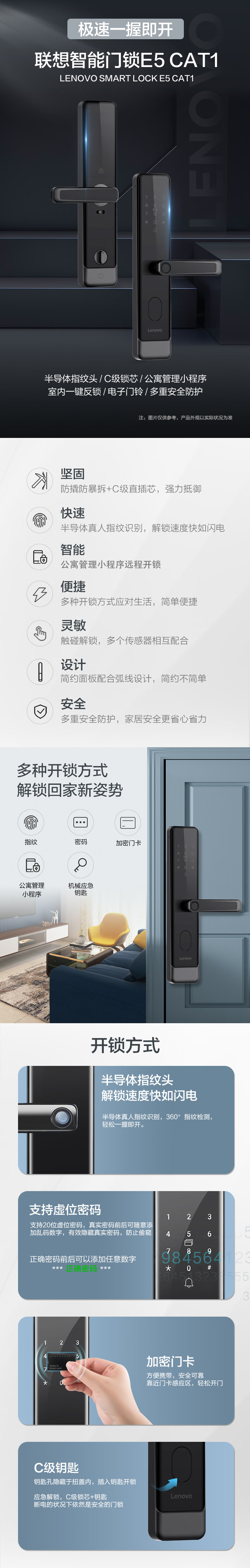 联想(Lenovo) 智能门锁 E5 C级锁芯 黑色(单位:台)