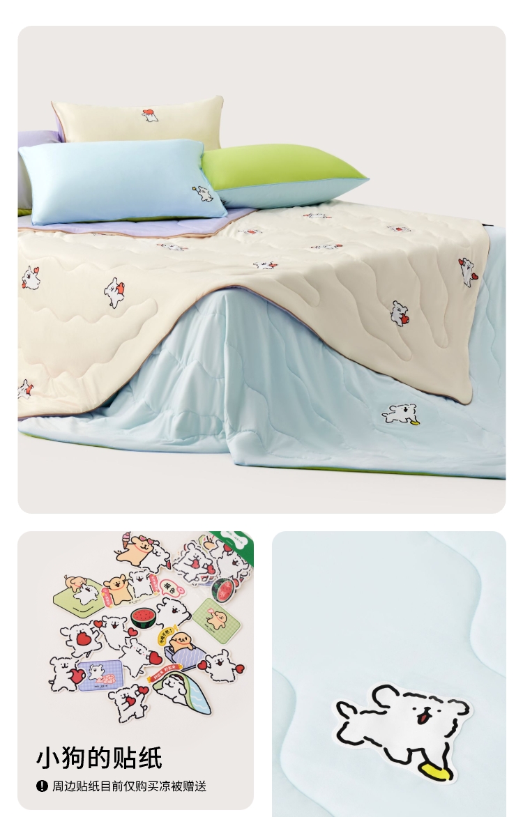 躺岛 凉凉暖暖夏凉被 线条小狗双重睡感 150x200cm 天然米+野生紫(单位:张)