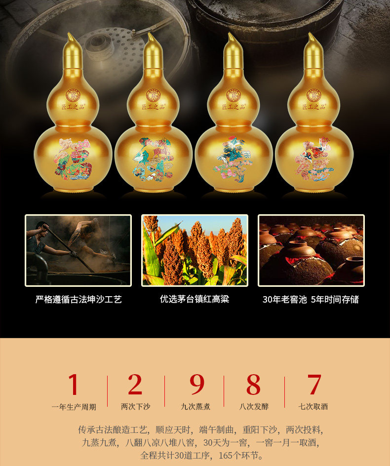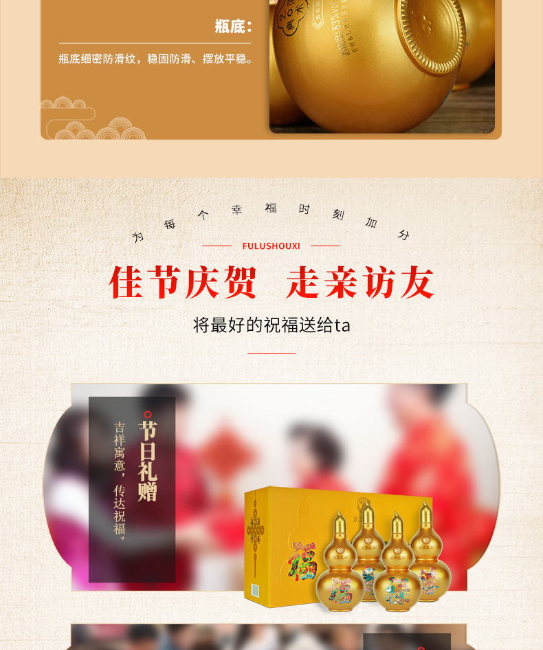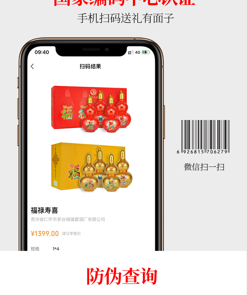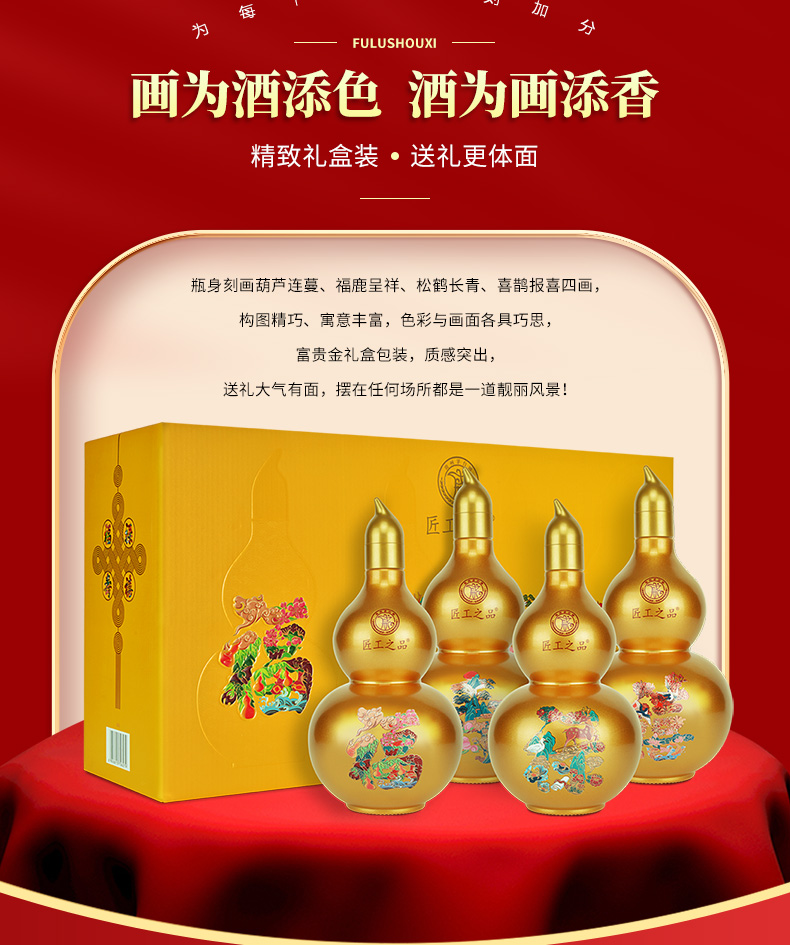 贵州茅台镇-陈泉53度 酱香型纯粮食白酒 福禄寿禧500ml*4瓶整箱 福禄寿禧(红色)