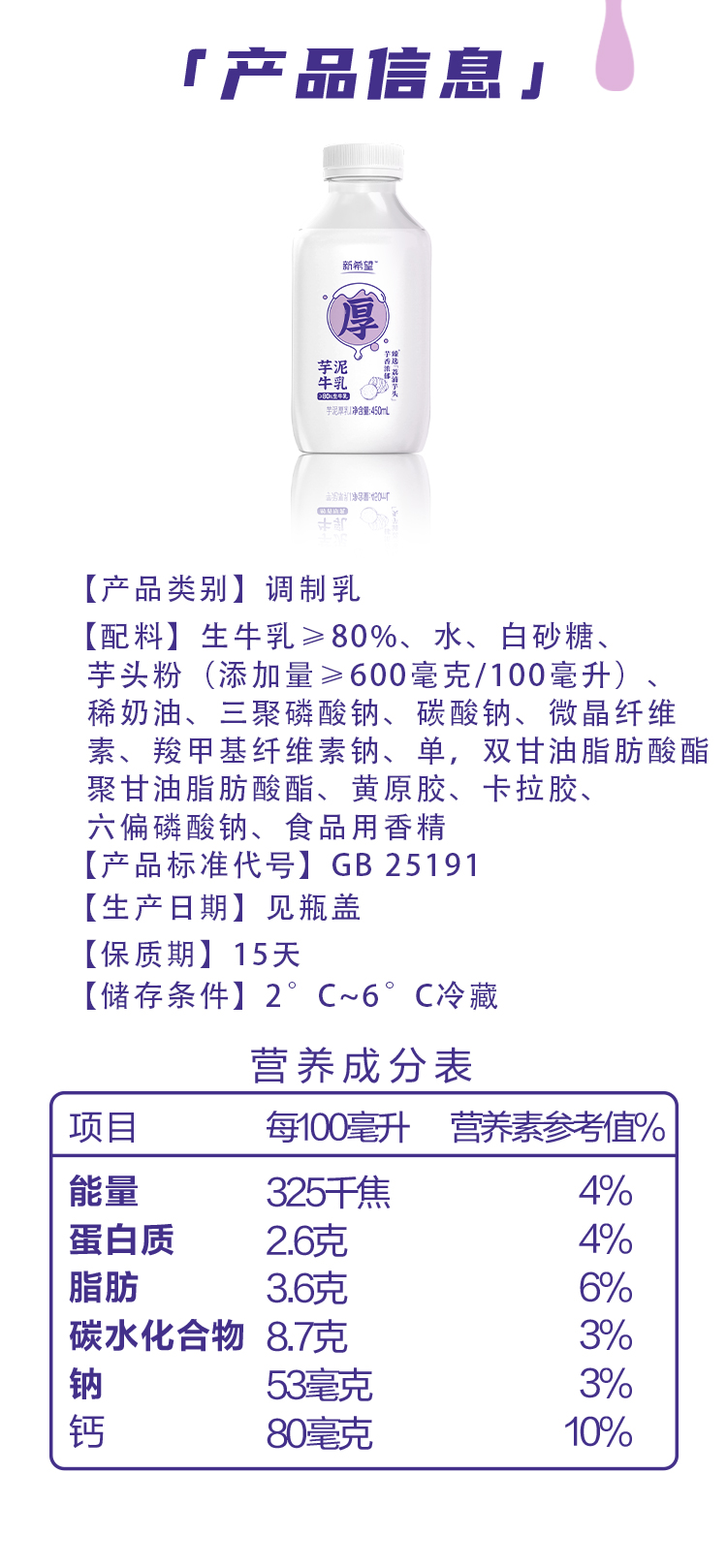 新希望 霓虹丸丸芋泥厚乳 果味系列 450ml*4瓶 炫橙色(单位:组)