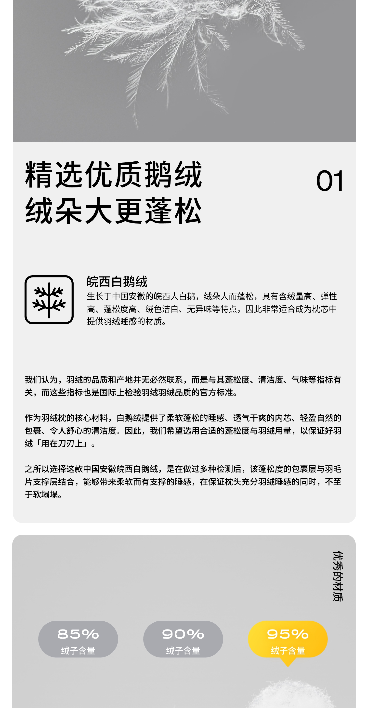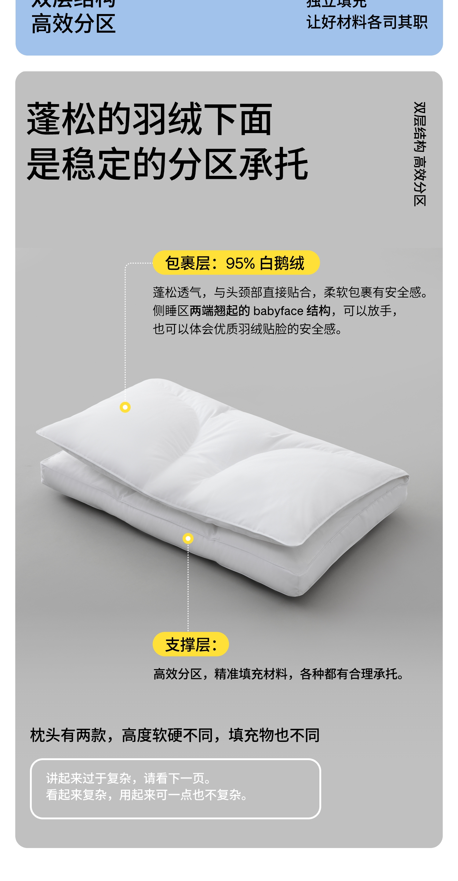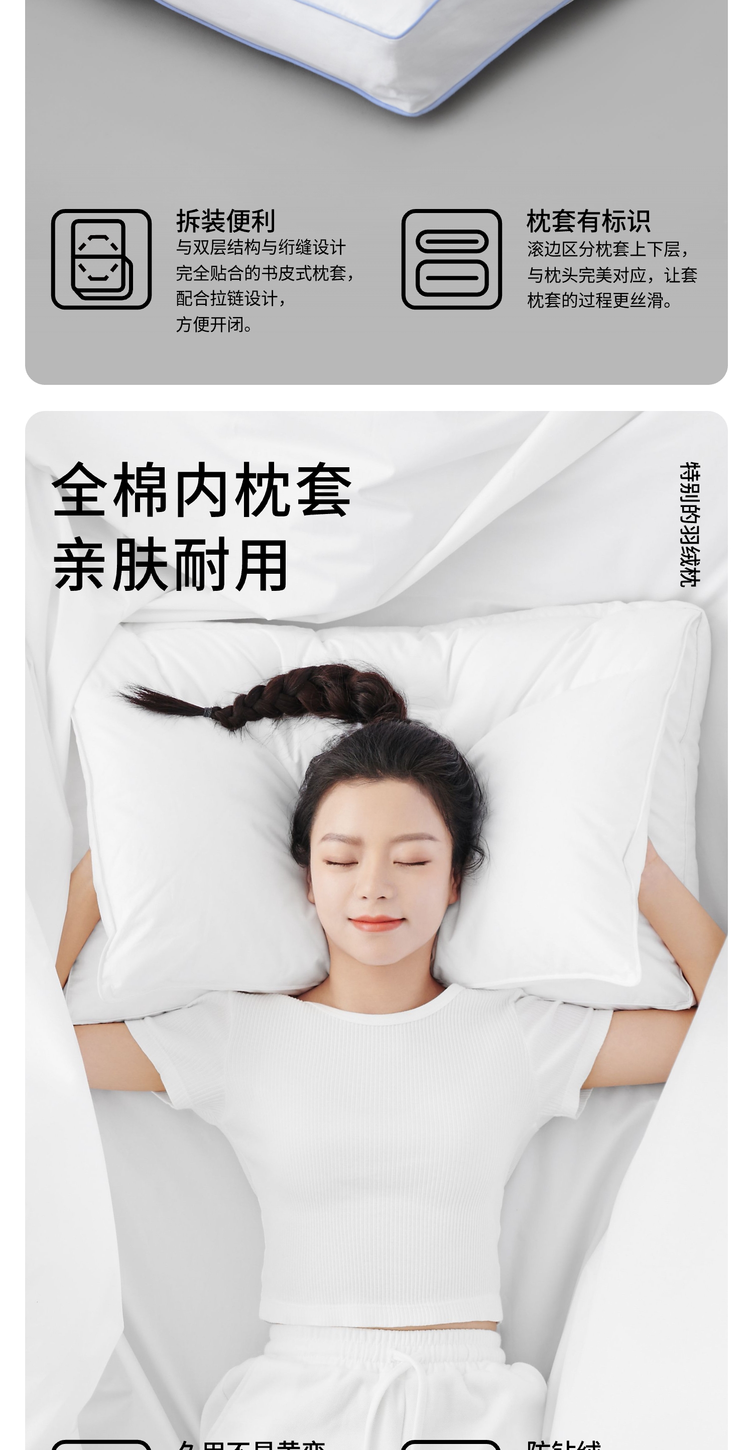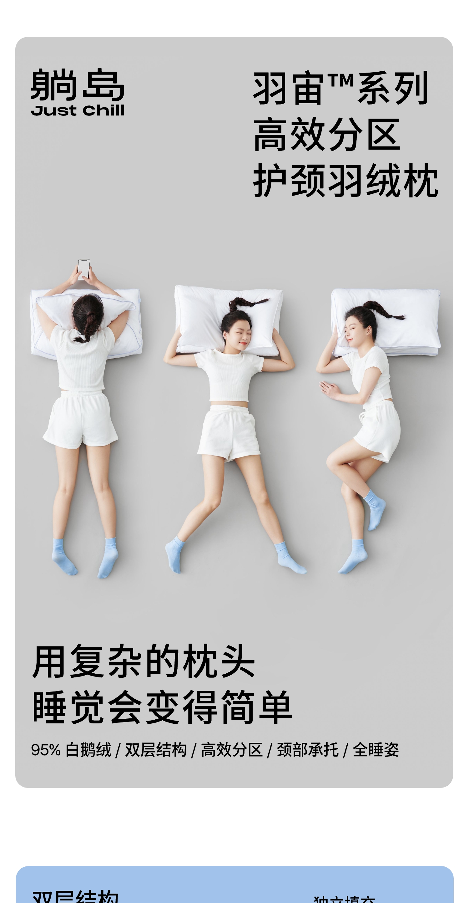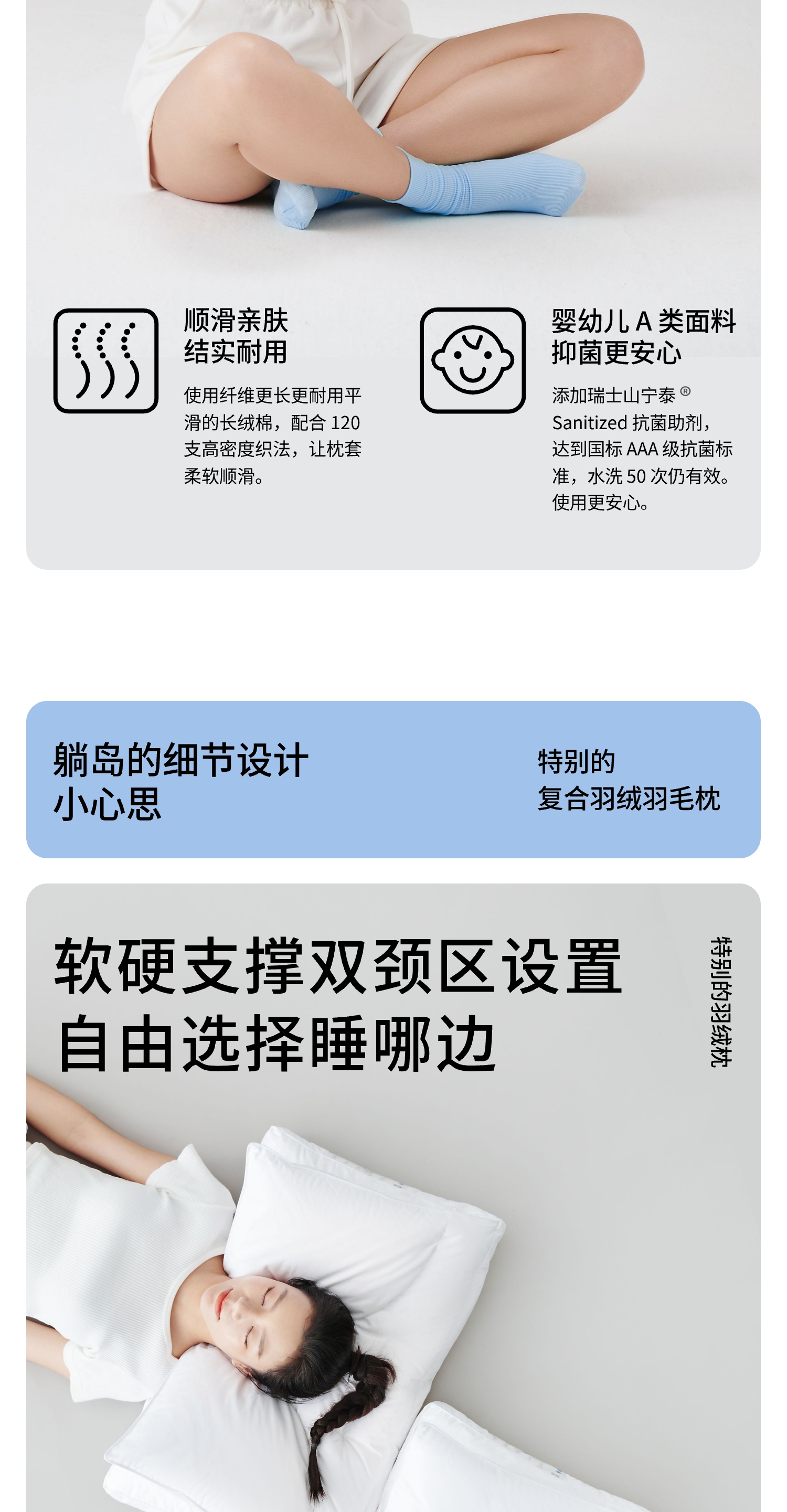 躺岛 高效分区护颈羽绒枕 软支撑低枕款 42x68cm 白色(单位:个)