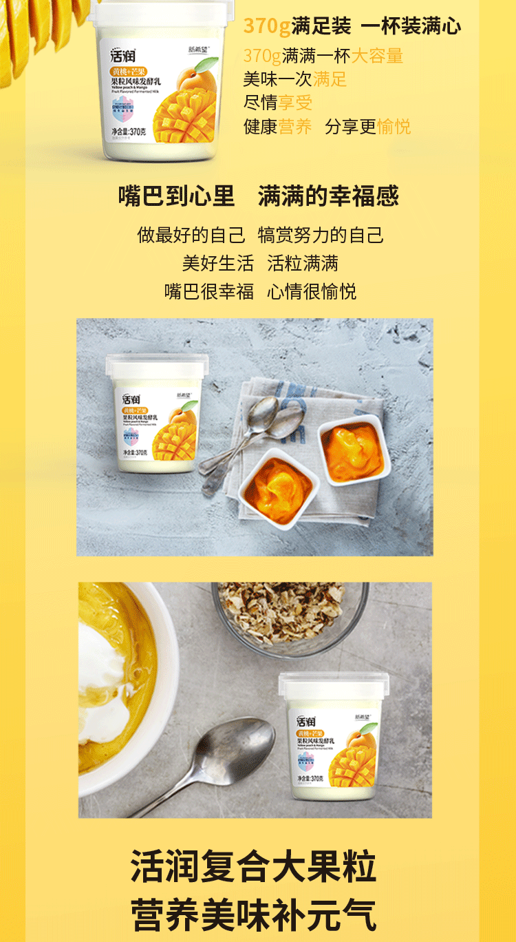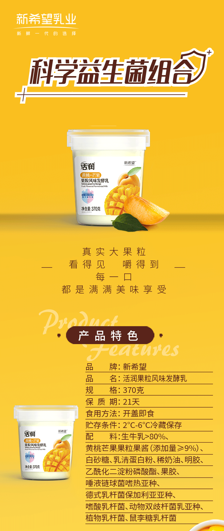 新希望 活润大果粒黄桃芒果浓酸奶 塑杯 370g*6杯 奶茶杏(单位:组)