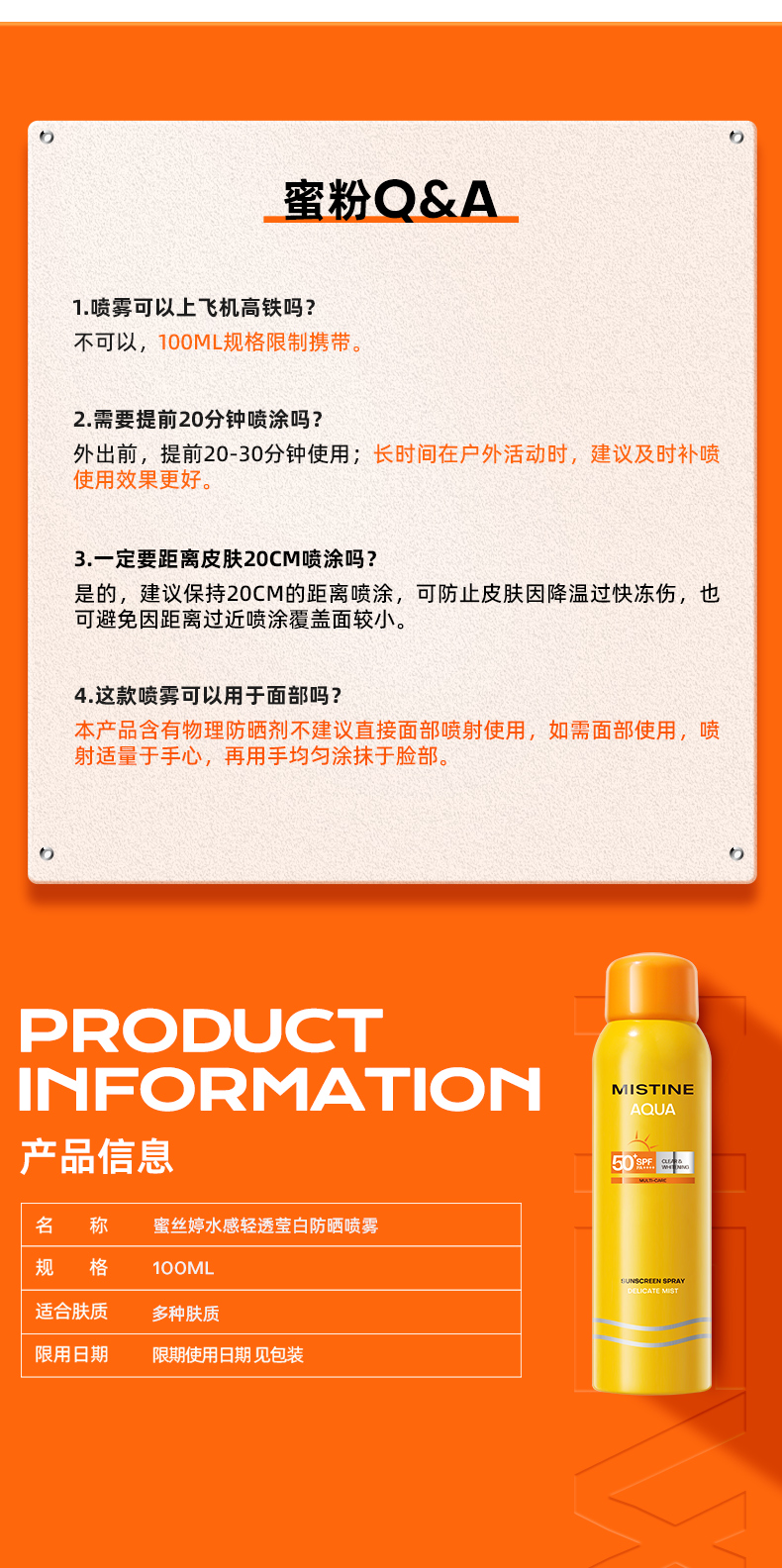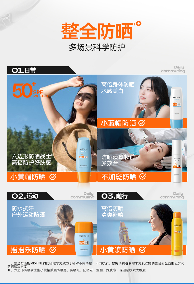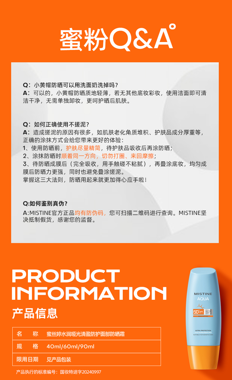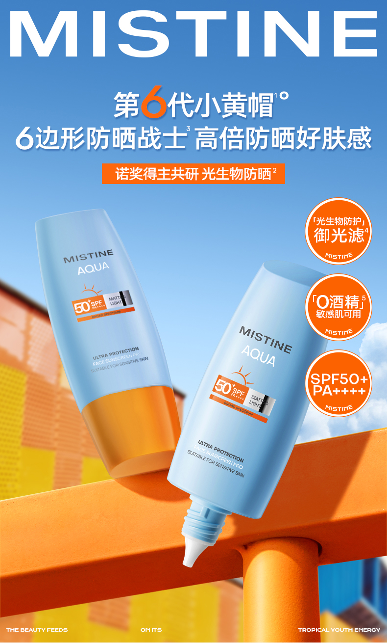 蜜丝婷(Mistine) 小黄帽+小黄喷水润哑光清盈防晒霜 SPF50+PA++++ 60ml+100ml 黄色(单位:组)