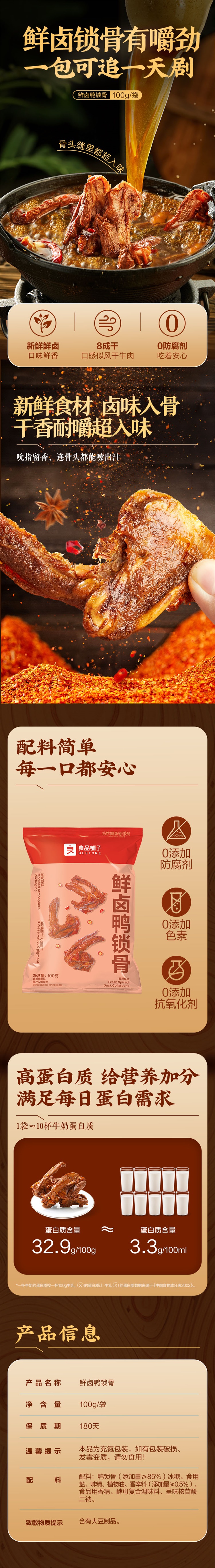 良品铺子 鲜卤鸭锁骨 休闲零食 100g*3 红色(单位:组)
