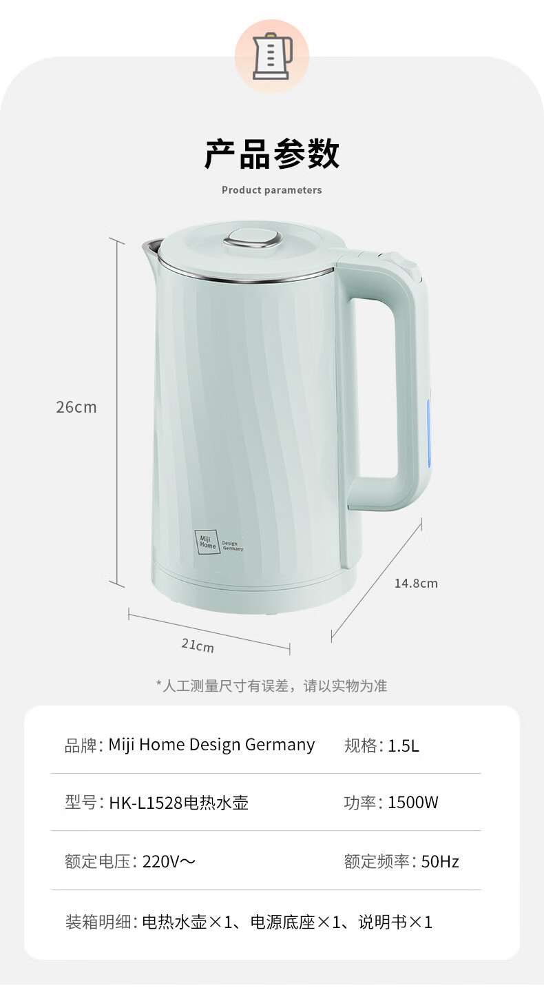 米技(MIJI) 电热水壶 HK-L1528 HK-L1528 无色(单位:个)