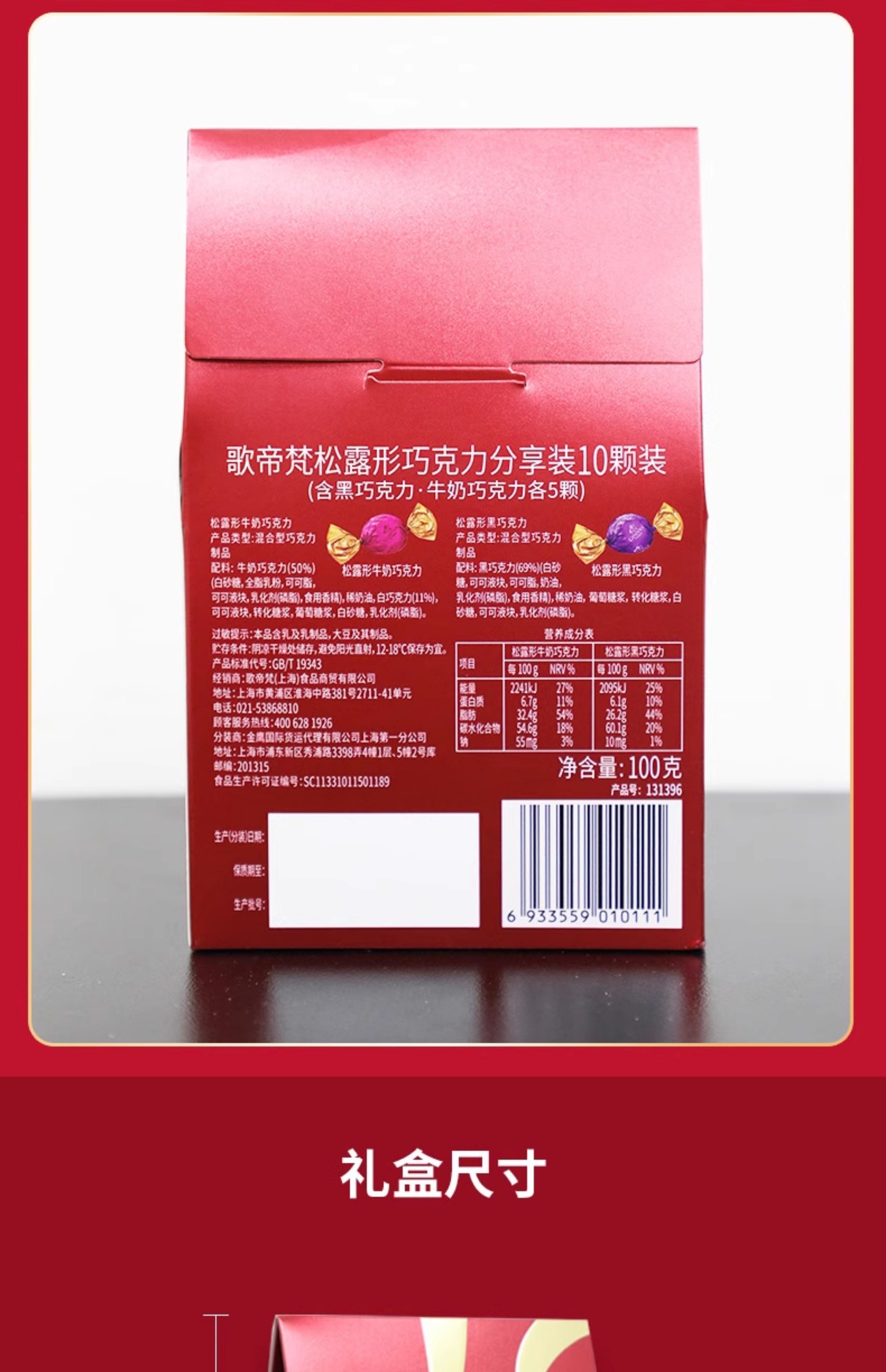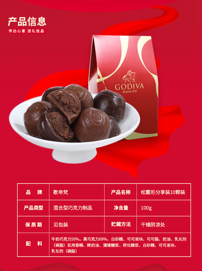 歌帝梵(Godiva) 松露形分享装10颗装100g95型 95型 95型 黄色(单位:盒)