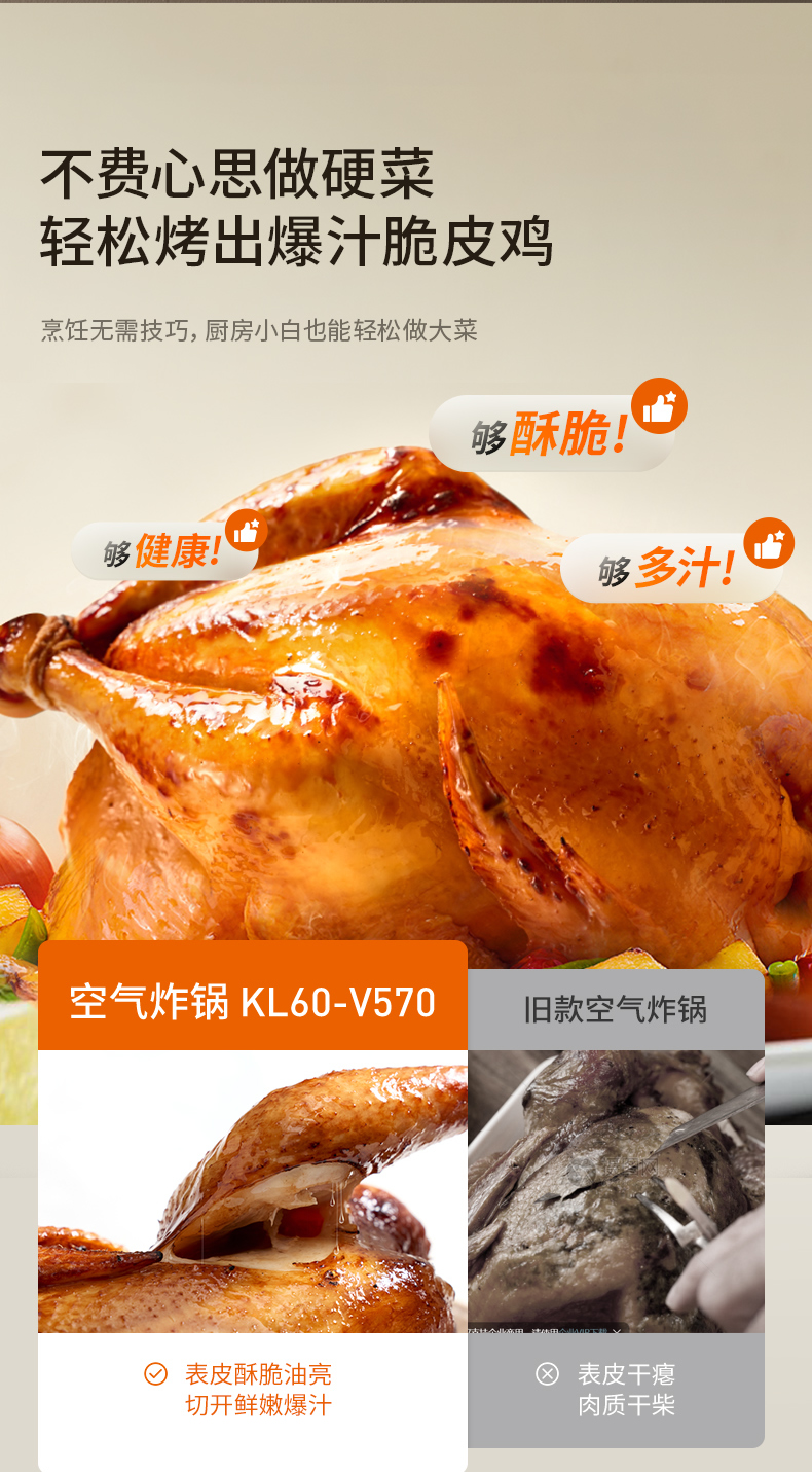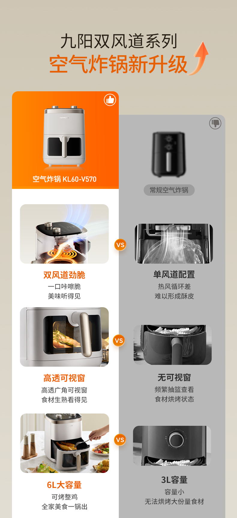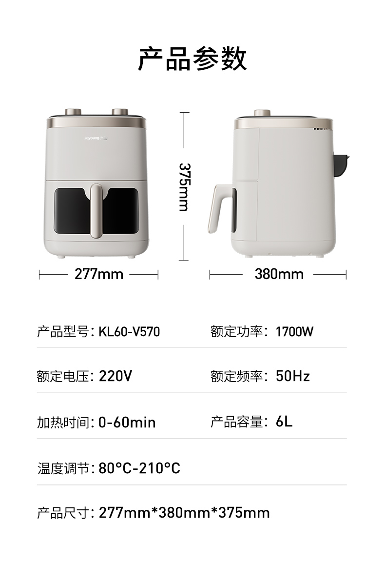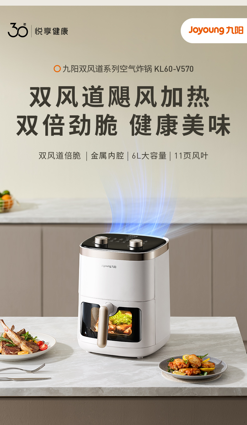 九阳(Joyoung) 可视空气炸锅 KL60-V570 6L 白色(单位:台)
