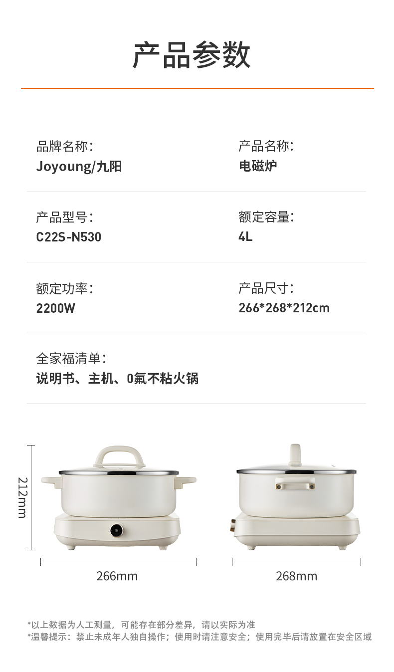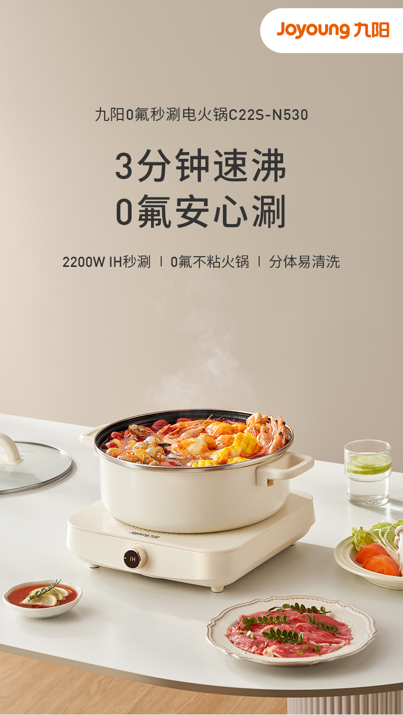 九阳(Joyoung) 电磁炉电火锅 C22S-N530 4L 象牙色(单位:台)