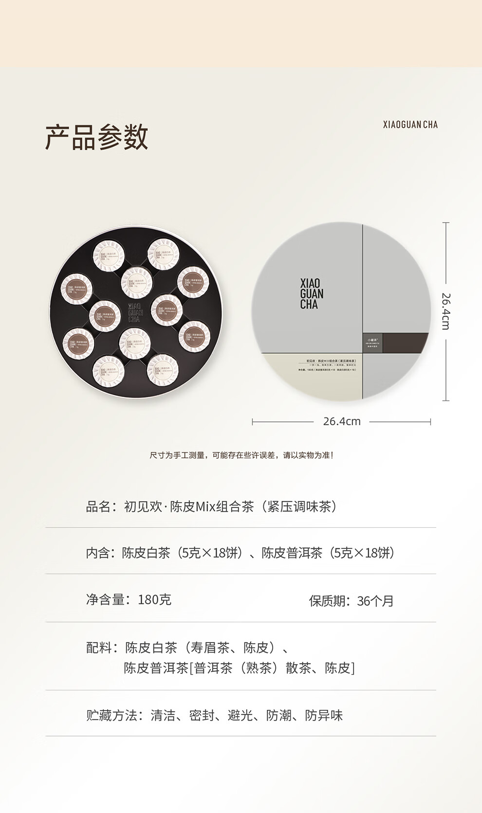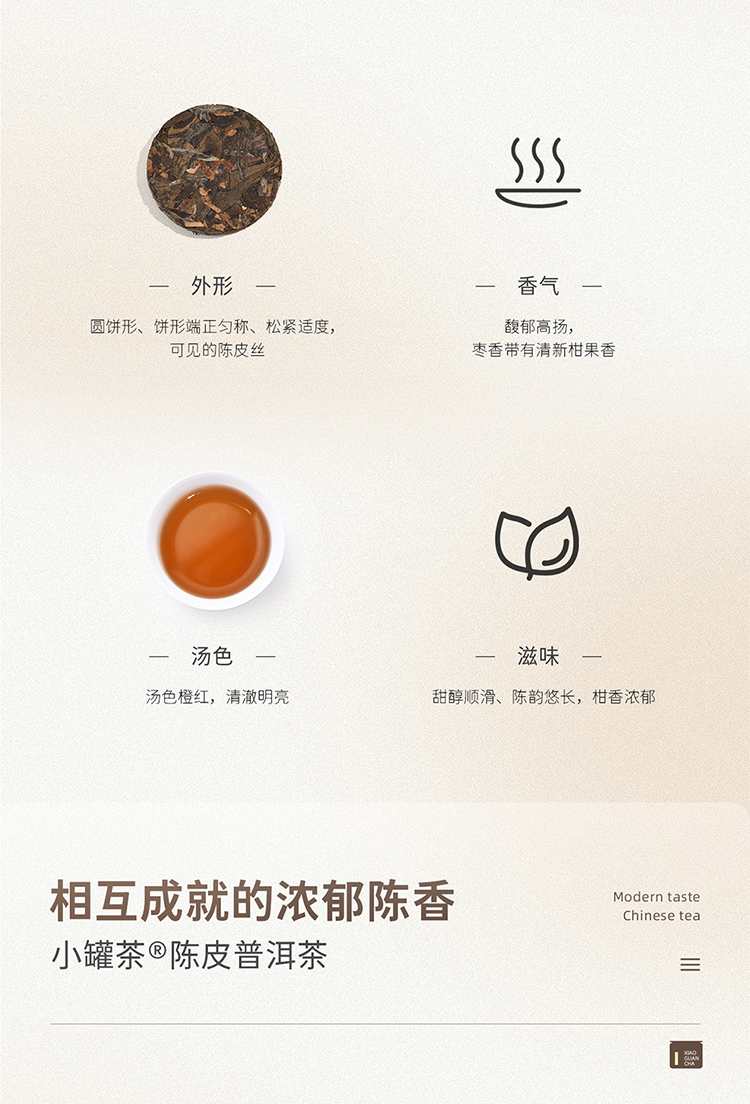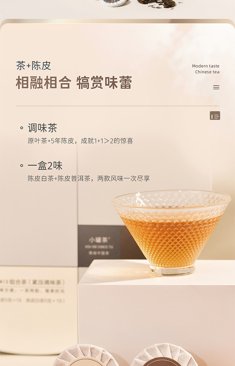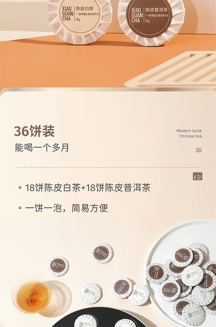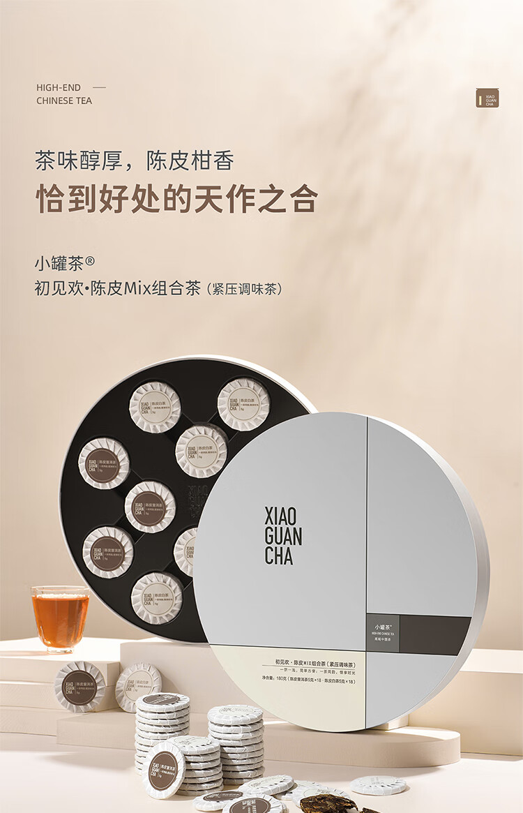 小罐茶 陈皮普洱熟茶配白茶紧压调味茶 初见欢陈皮组合茶 180g(36饼) 混色(单位:盒)