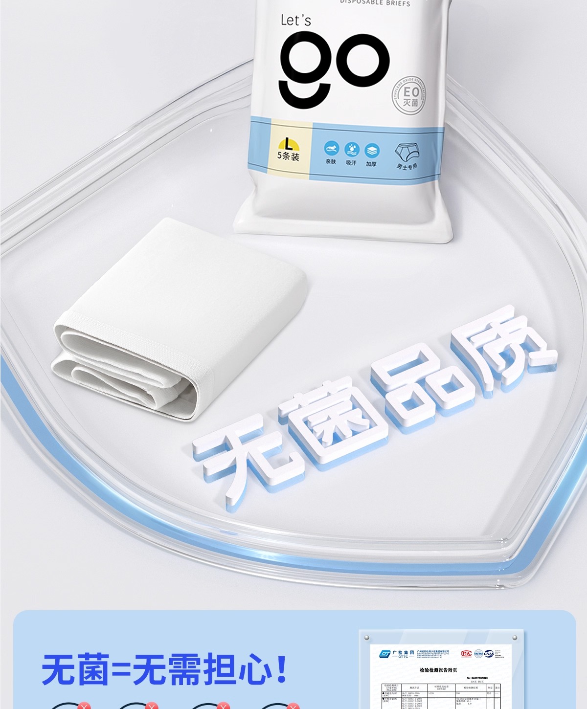 Freego 一次性内裤男士灭菌三角无菌级 L码 5条装*8包 白色(单位:组)