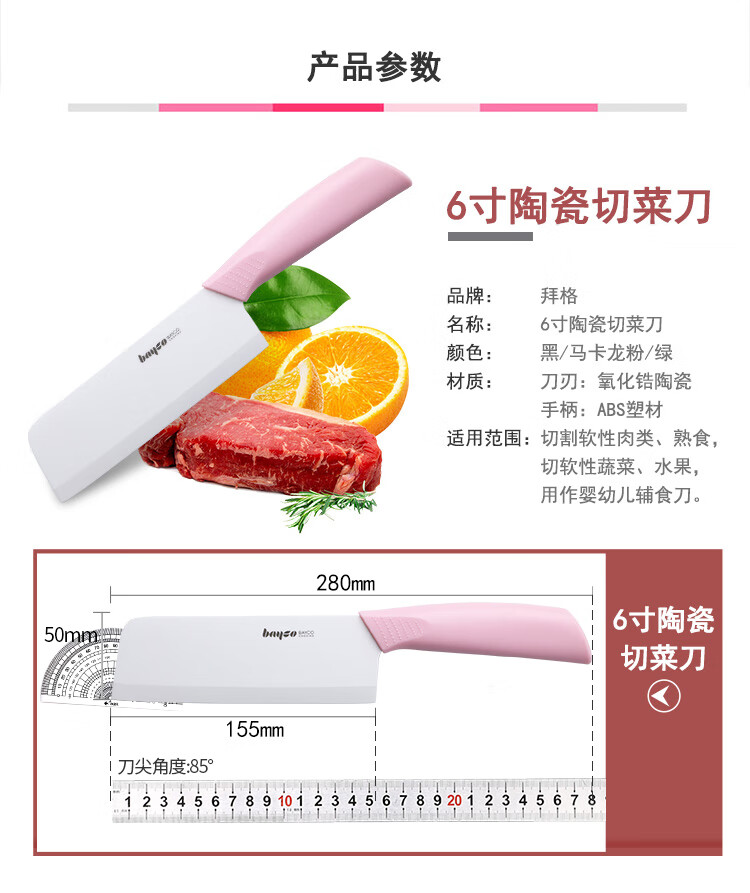 拜格(BAYCO) 陶瓷切片菜刀 BD8034 6寸 粉色(单位:把)
