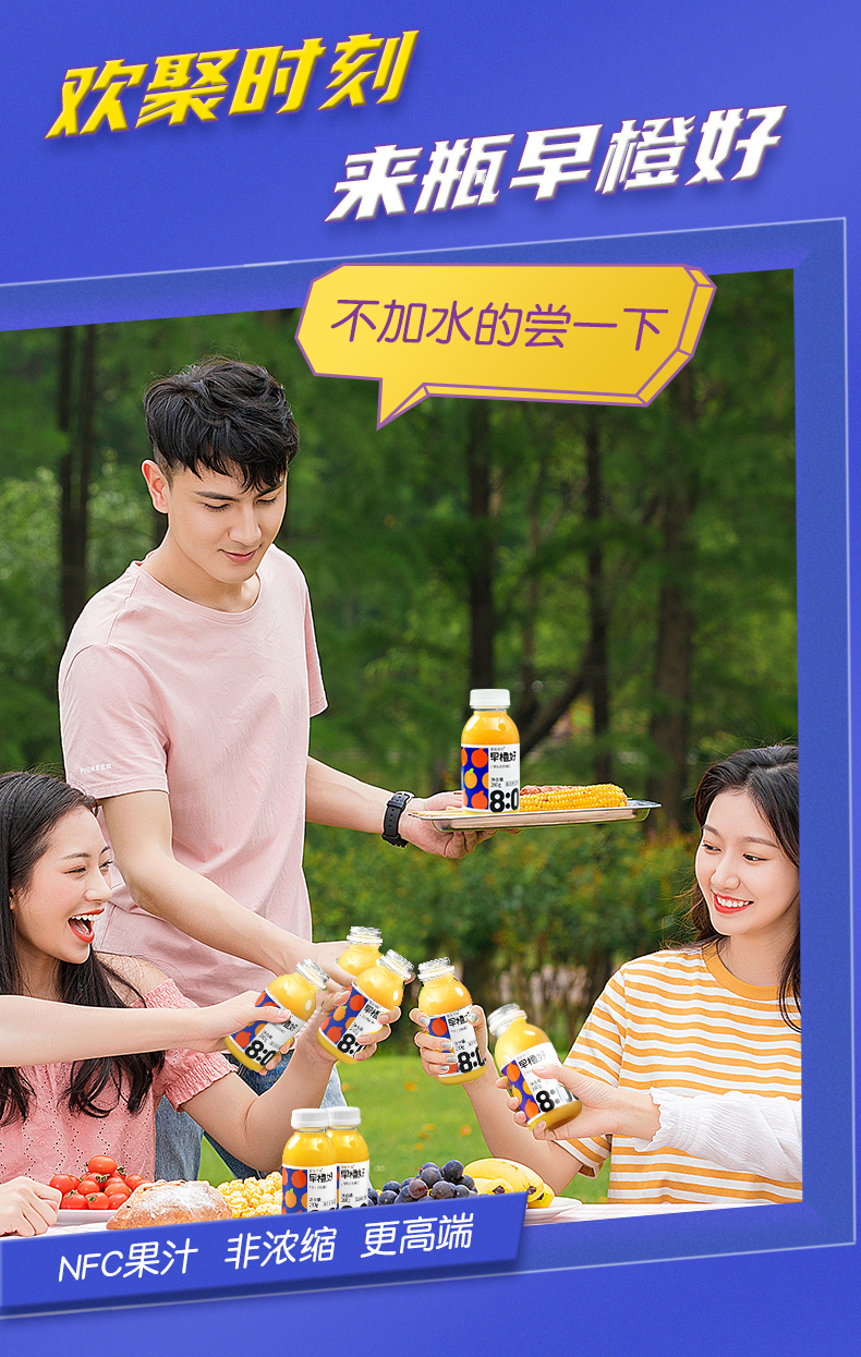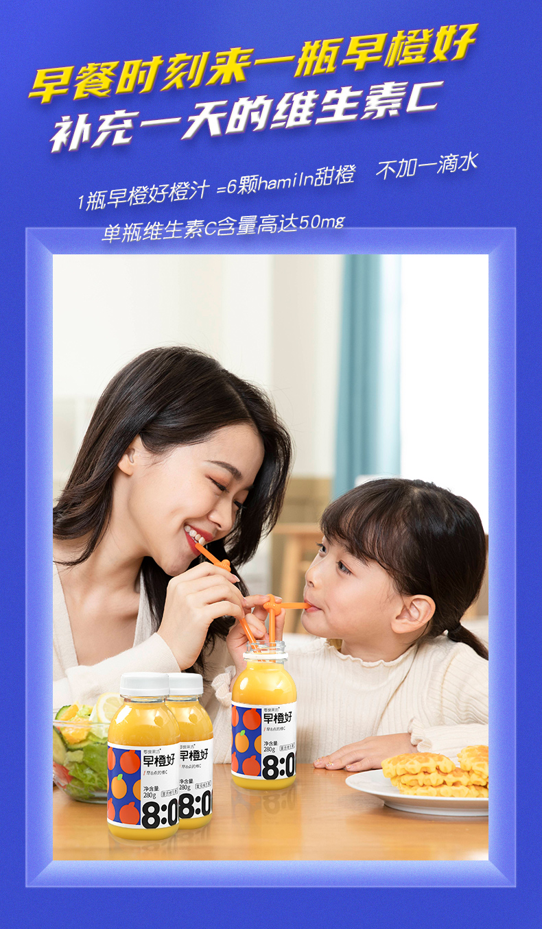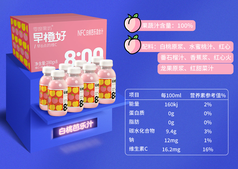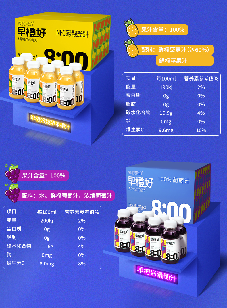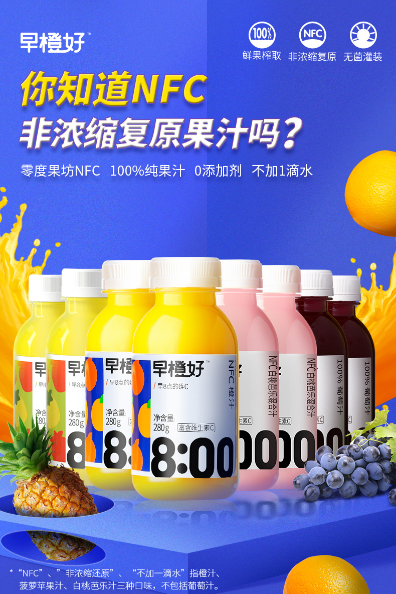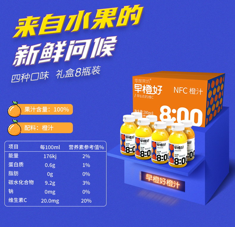 零度果坊早橙好100%果汁菠萝苹果汁280ml/瓶*8 橙色