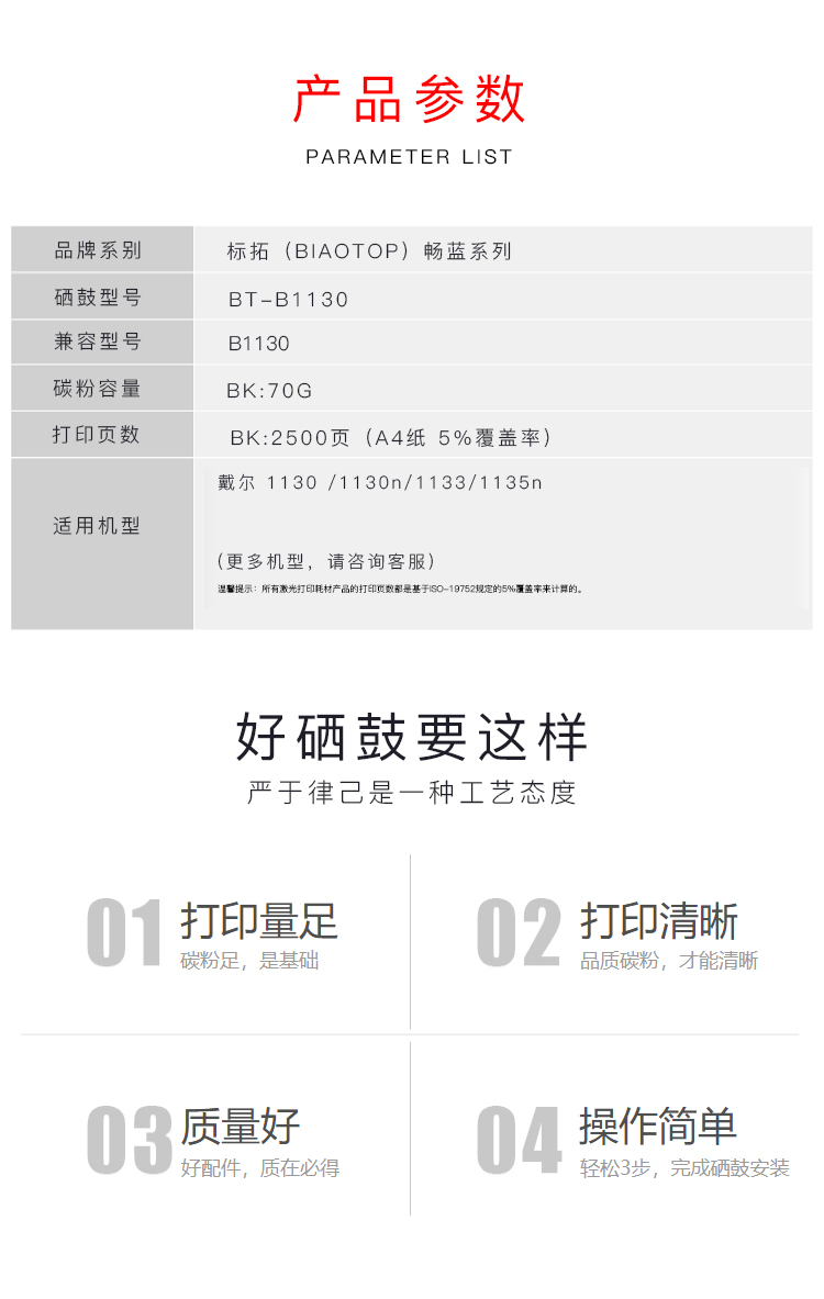 标拓 BT-B1130 2500页 适用戴尔DELL 1130 硒鼓 1.00 只/支 (计价单位:支) 黑色