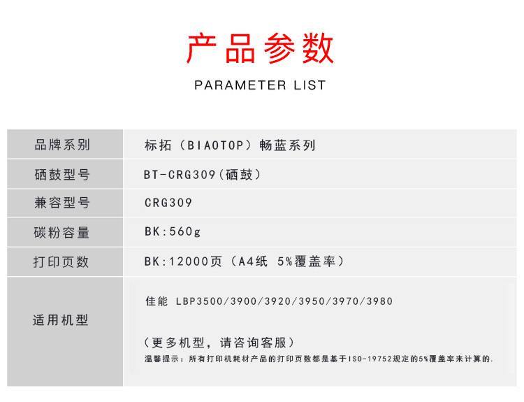 标拓 BT-CRG309 BK 12000页 适用佳能LBP3500 硒鼓 1.00 只/支 (计价单位:支) 黑色