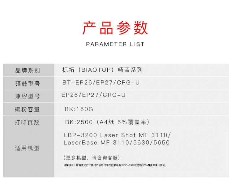 标拓 BT-EP26/EP27/CRG-U 打印量2500页 适用MF3110/3112/3220 硒鼓 1.00 只/支 (计价单位:支) 黑色