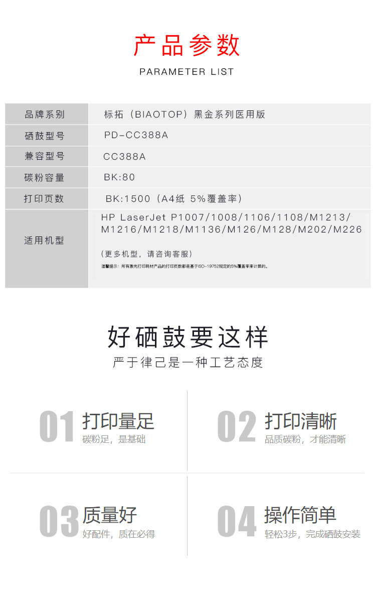 标拓 PD-CC388A 1500页 适用HP LaserJet P1007 硒鼓 1.00 只/支 (计价单位:支) 黑色