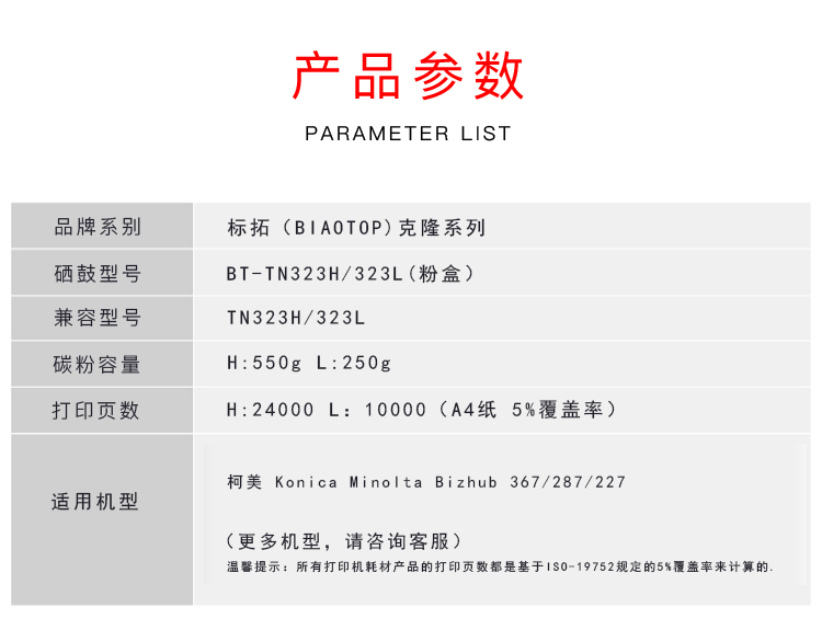 标拓 BT-TN323H BK 24000页 适用柯美Bizhub 367 粉盒 1.00 只/支 (计价单位:支) 黑色