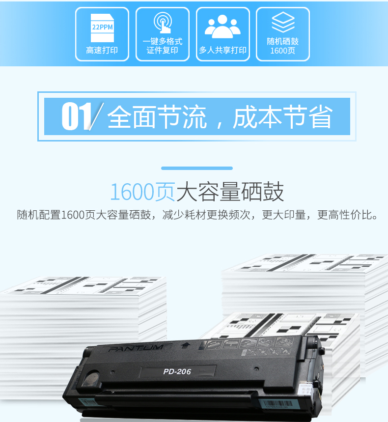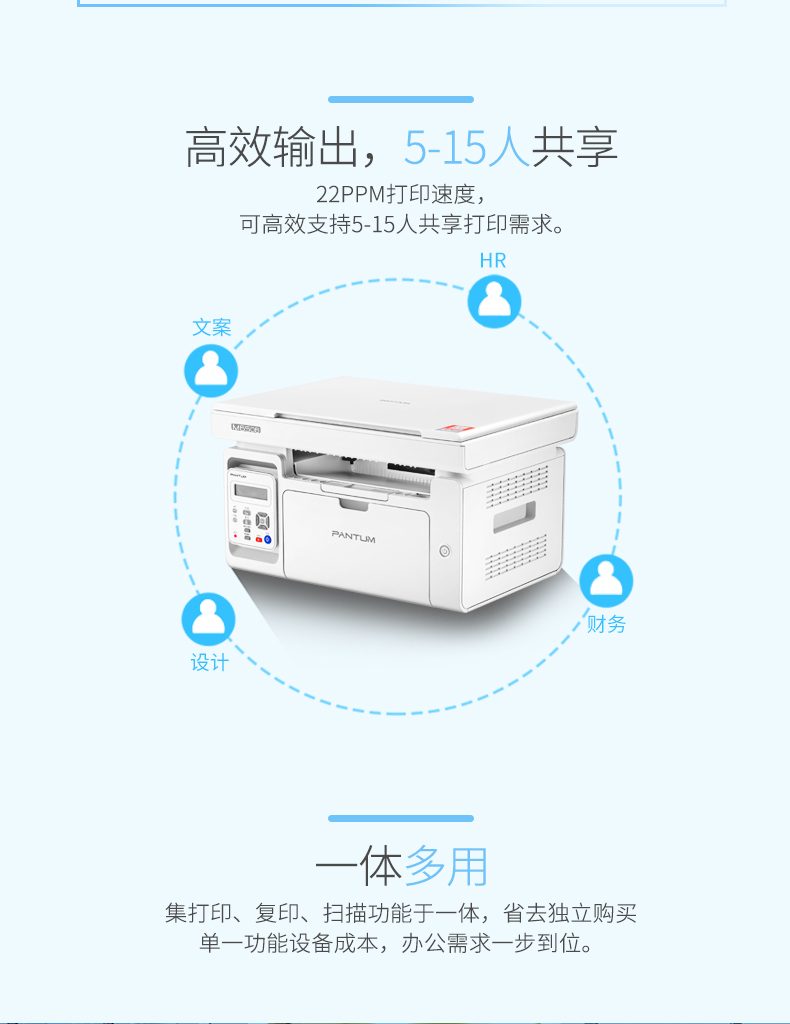奔图(PANTUM)M6506黑白激光多功能一体机 (打印复印扫描)USB 台 灰色