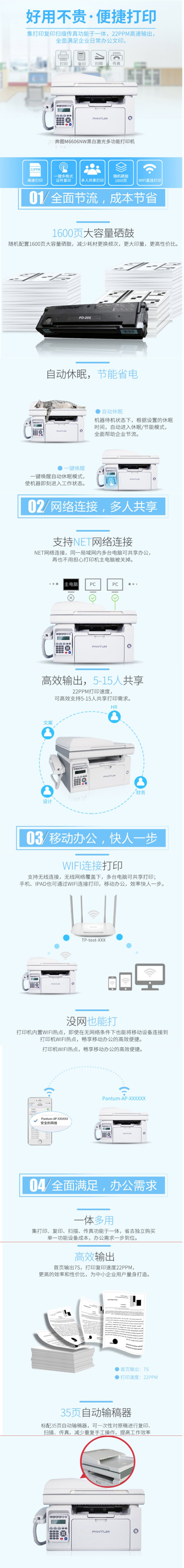 奔图(PANTUM) M6606NW A4黑白激光多功能一体机 打印复印扫描传真网络打印 台 灰色