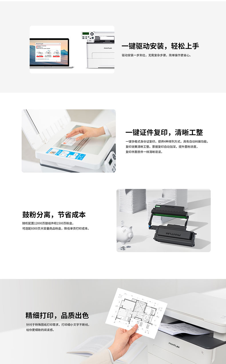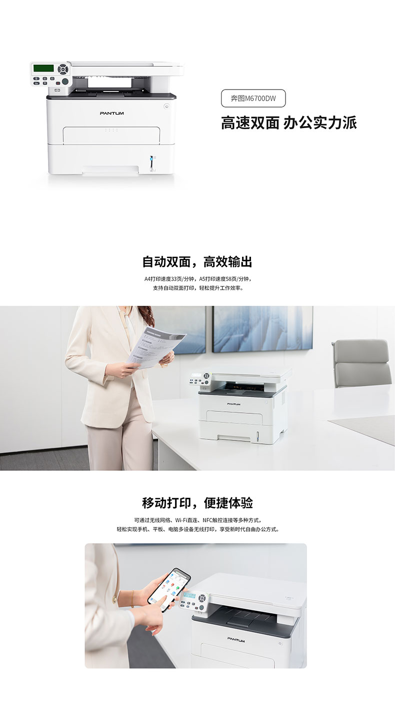 奔图(PANTUM)M6700DW黑白激光多功能一体机(打印 复印 扫描)台 白色