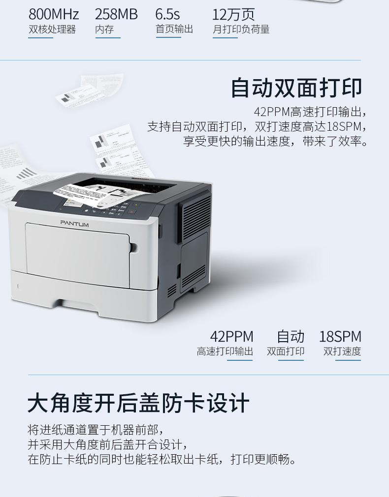 奔图(Pantum)P5006DN A4黑白激光打印机 台 灰色