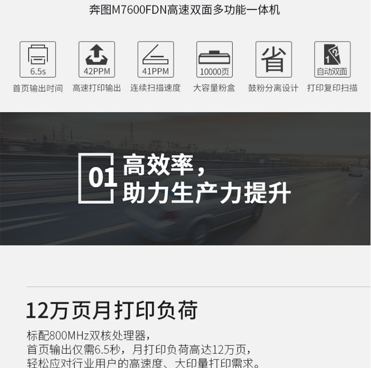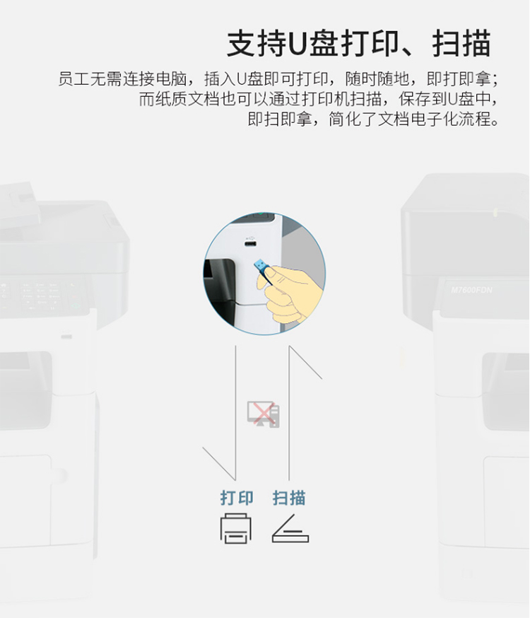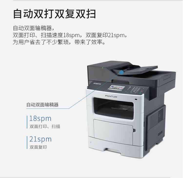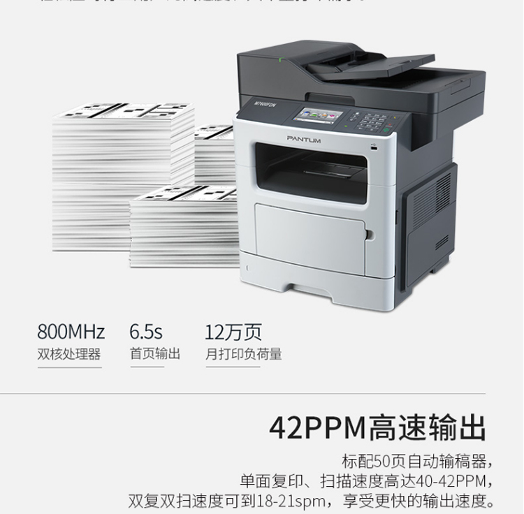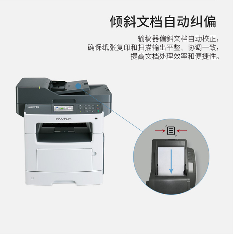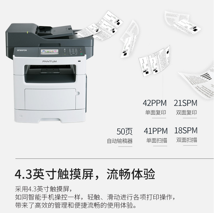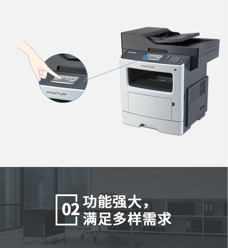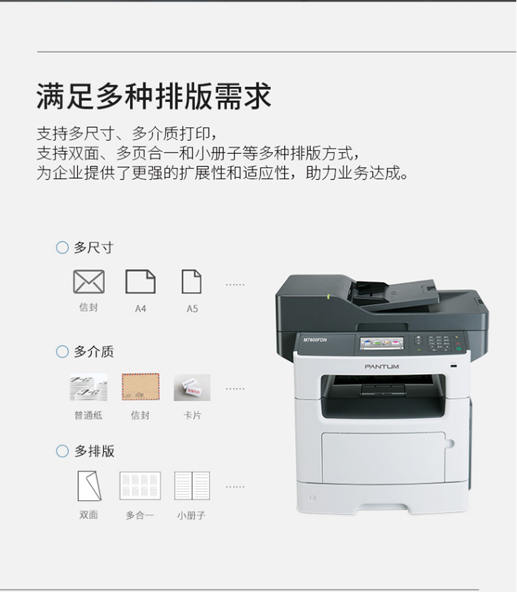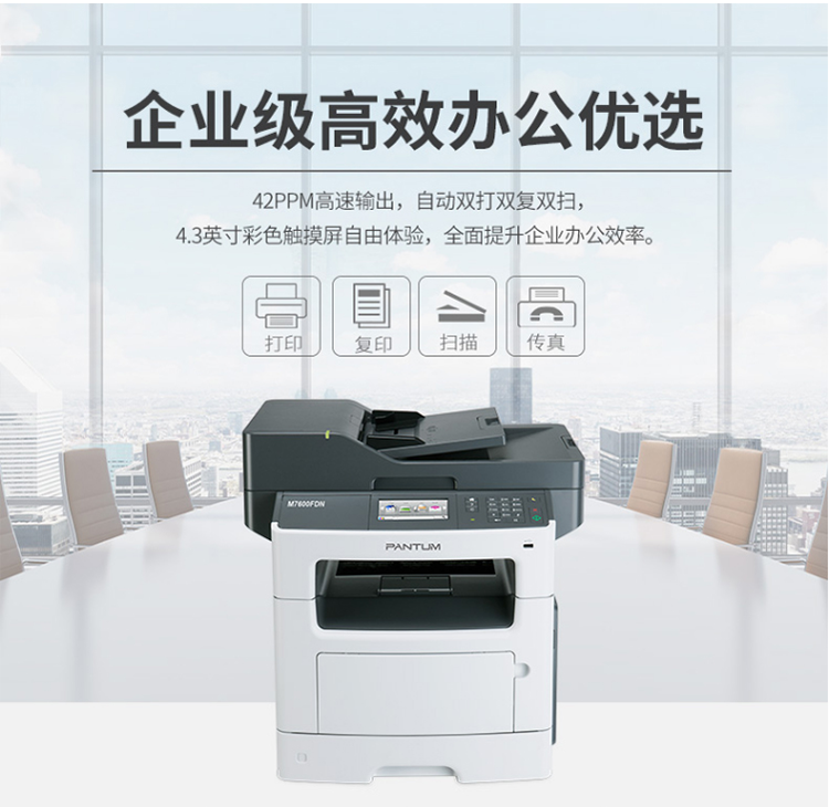奔图(PANTUM)M7600FDN A4黑白激光多功能一体机(双面打印、复印、扫描、有线) 台 灰色