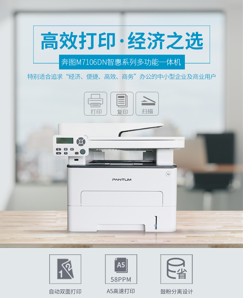 奔图(PANTUM) M7106DN 黑白激光三合一多功能一体机 灰色