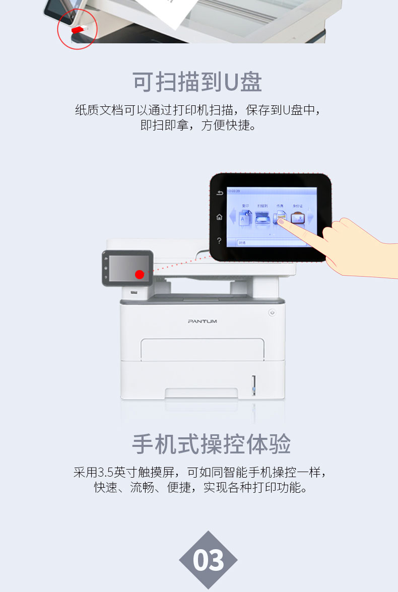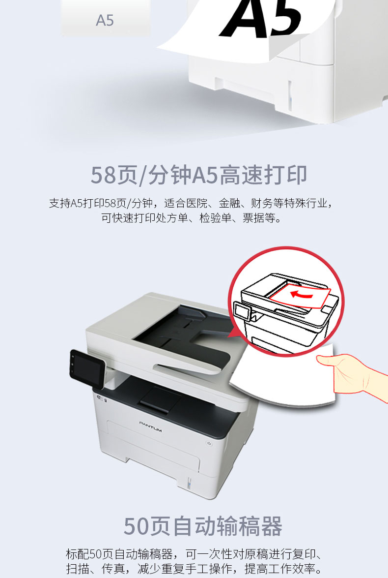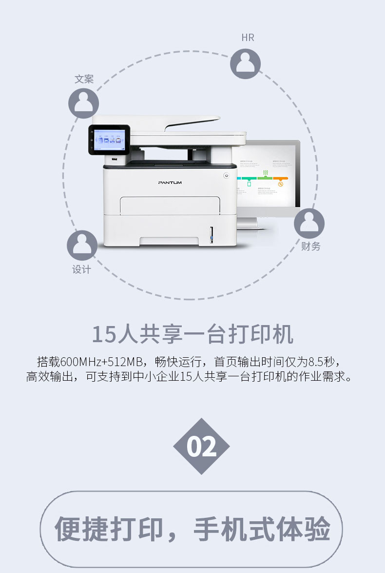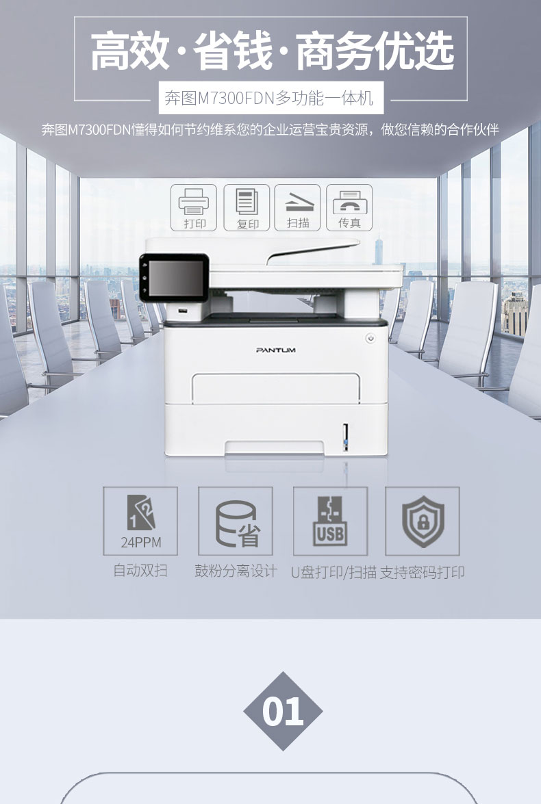 奔图 M7300FDN 黑白激光多功能一体机 复印 打印 扫描 传真 台 白色